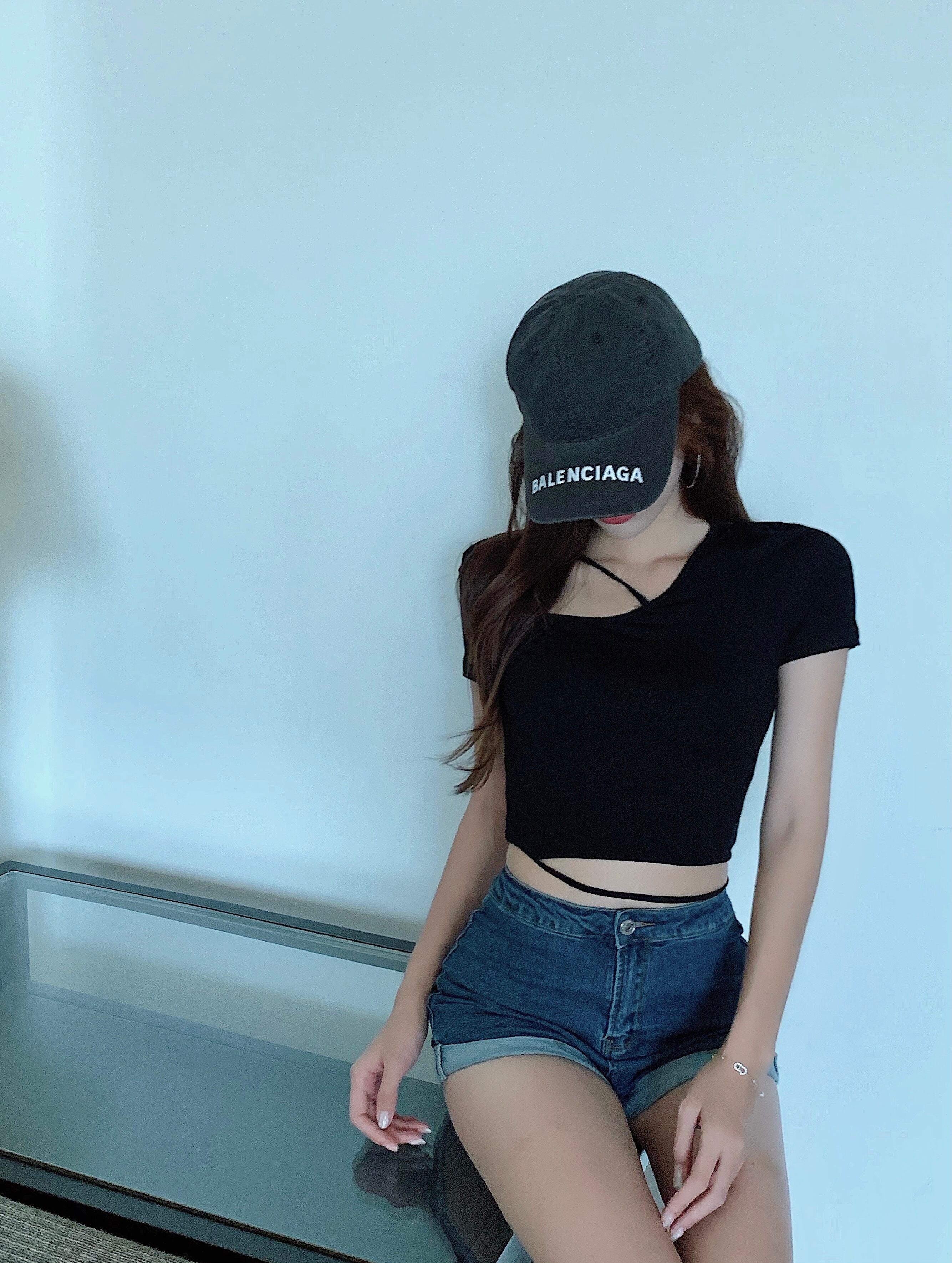 Tシャツ サマーブラックショートトップス 夏物 ガールズファッション45735338983