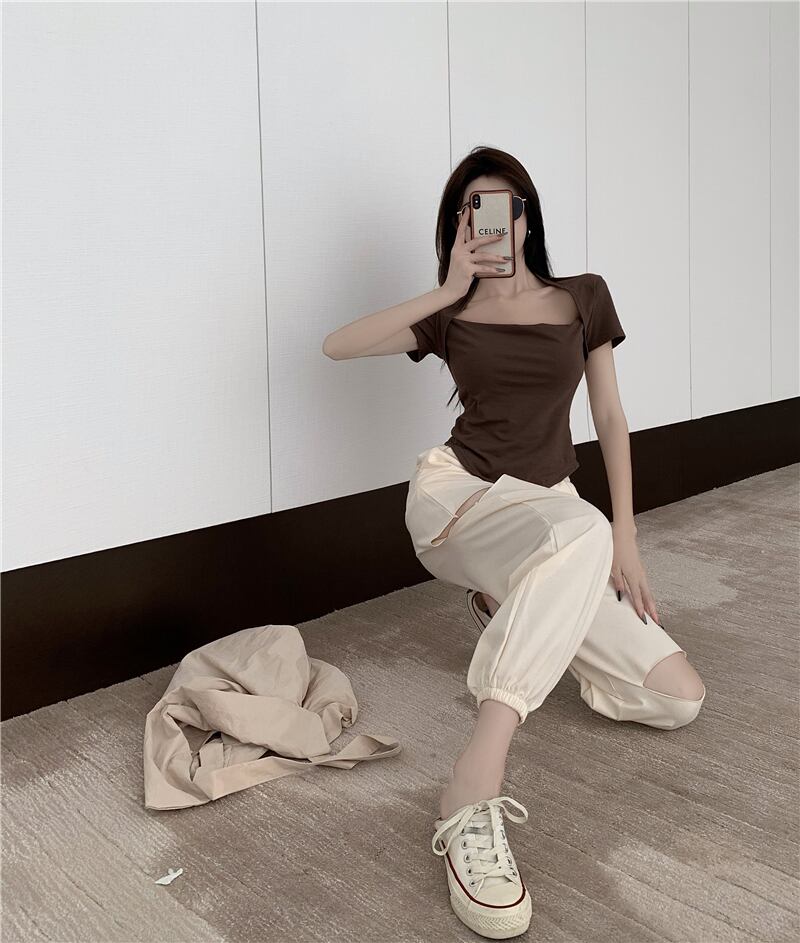 ショートTシャツ ハイウェストギャザーカジュアルサマー 夏物 ガールズファッション83839259489