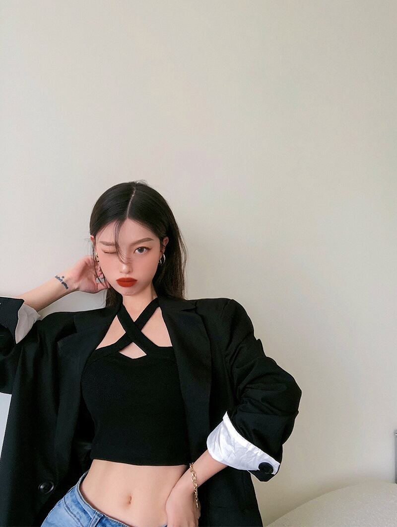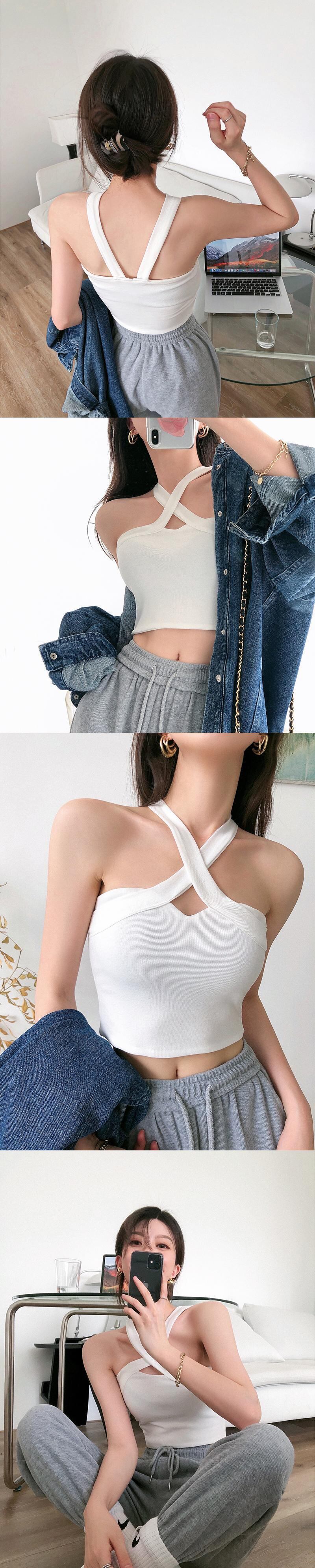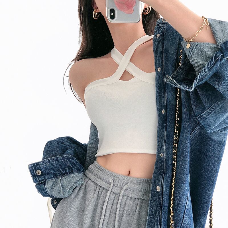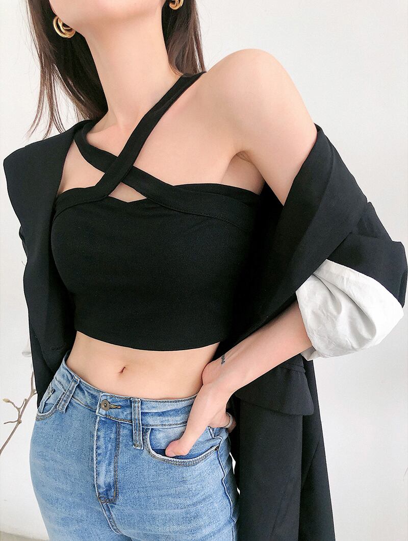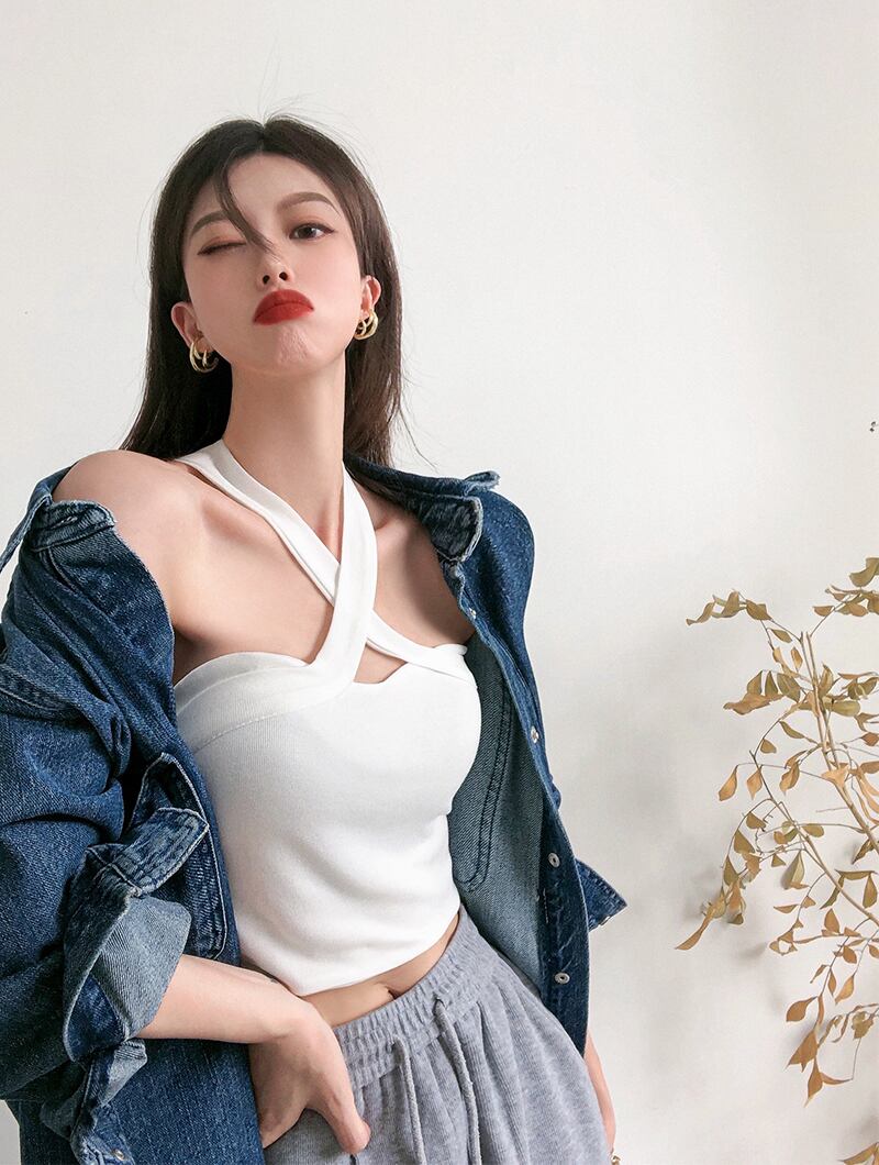 クロスホルターショートホワイトブラウス レディースサマー 夏物 ヨーロピアン ガールズファッション15415289512