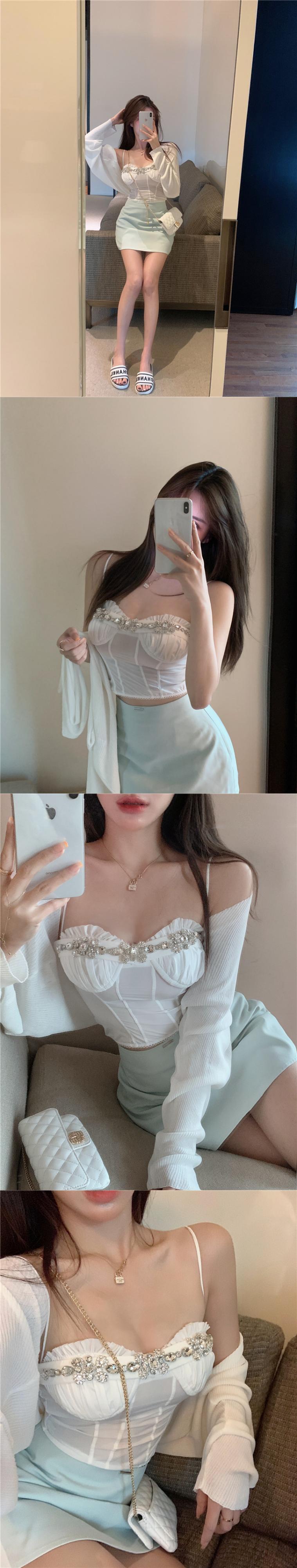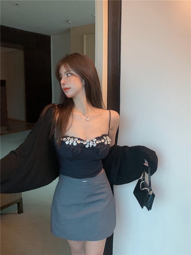 色:白いベスト,黒のベスト,グレーのベスト,カーディガンブラック,ショートスカートグリーン,カーディガンホワイト,ショートスカートグレー