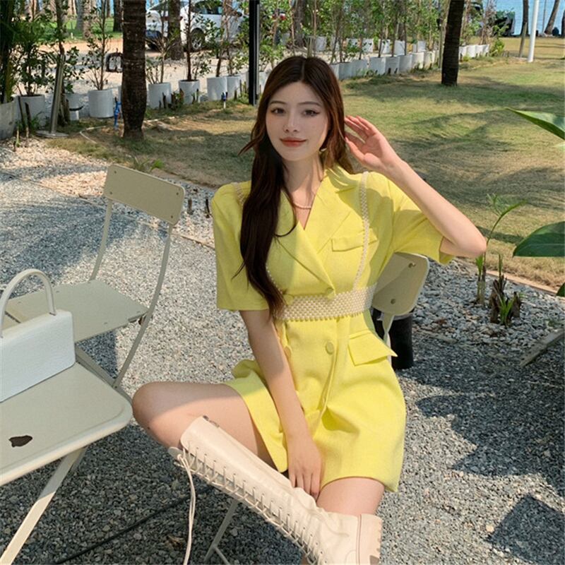 色:パールベスト,白いスーツのスカート,黄色のスーツのスカート