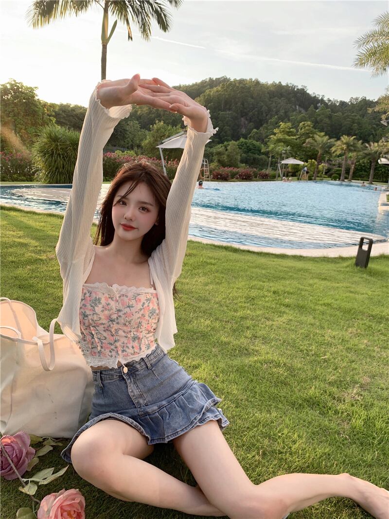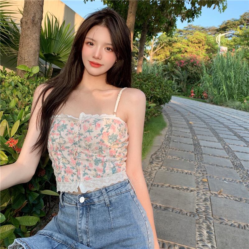 レースフローラルサマーショートトップス 大人ガーリー スウィート キュート カジュアル 夏物 花柄 ピュア ガールズファッション38784803160