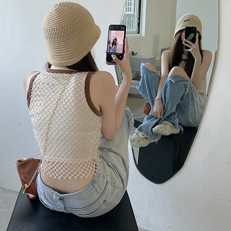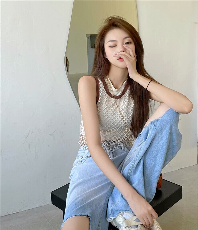 メッシュサマーノースリーブ ブラウス ストリート 夏物 ガールズファッション14293180096