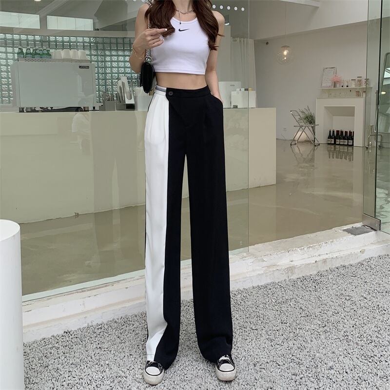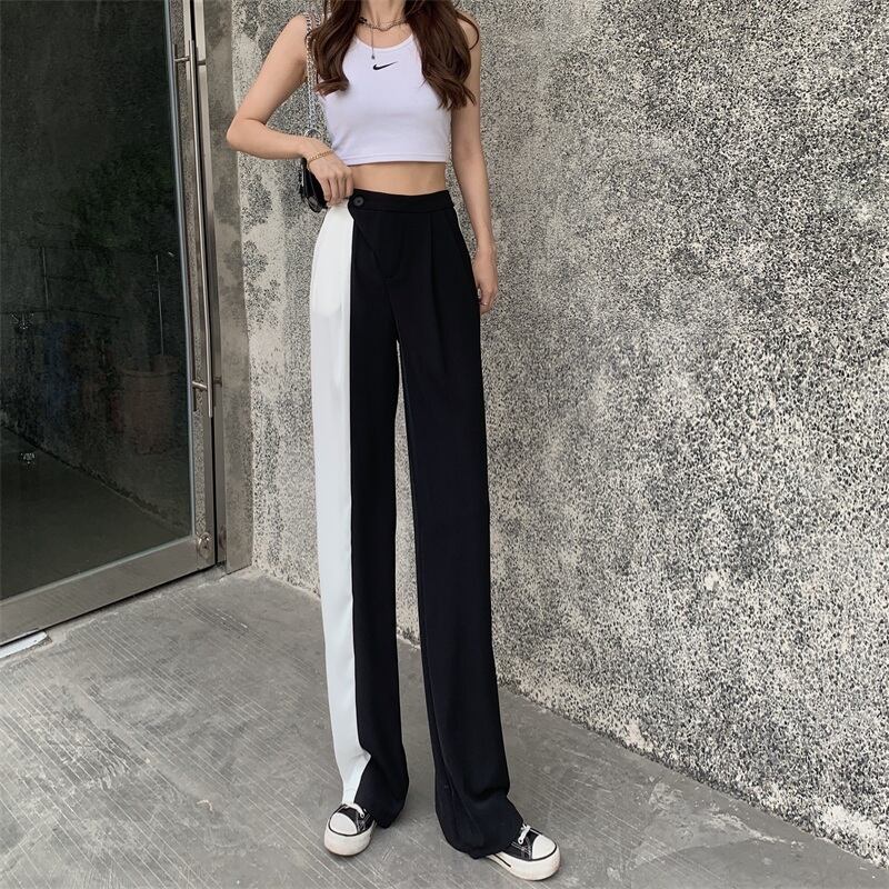 薄手カジュアルパンツ サマーブラックホワイトカラーハイウェストウェストワイドレッグ 夏物 ワイドパンツ ガールズファッション50225280808