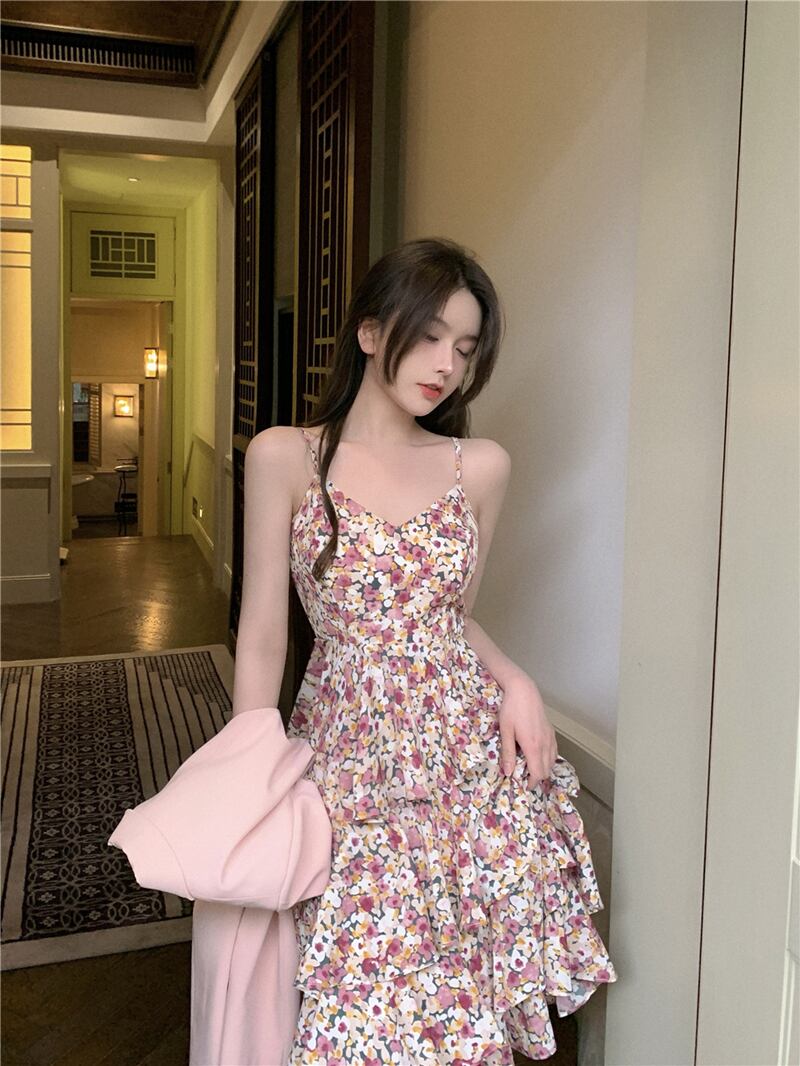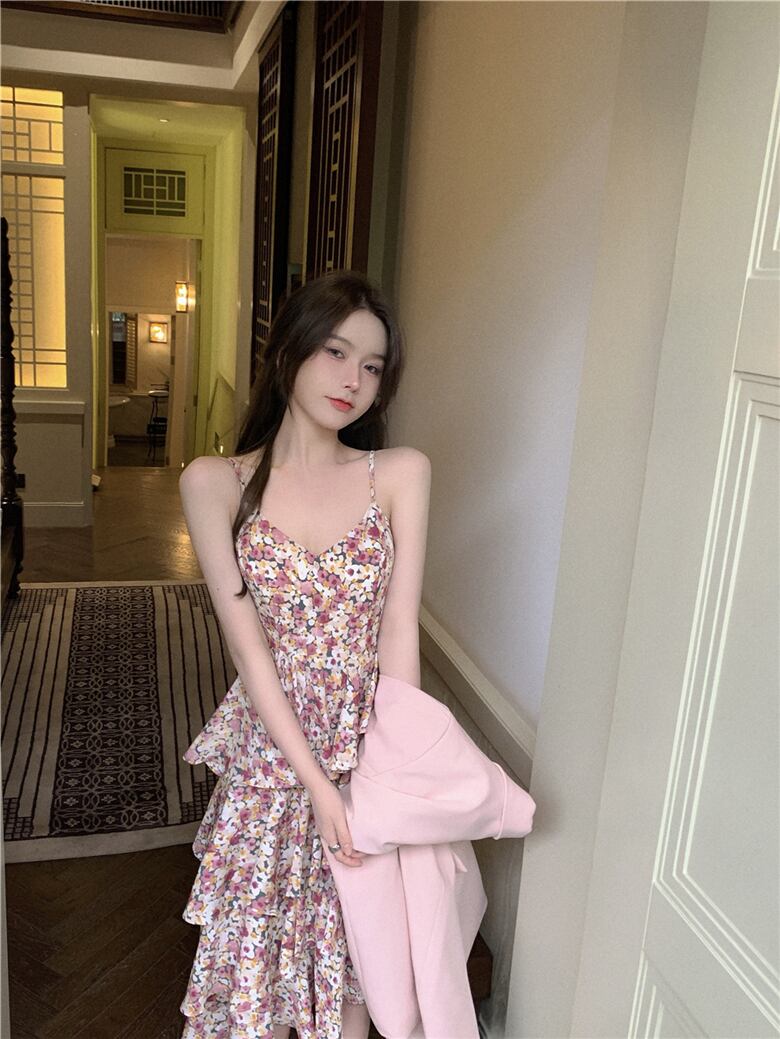 サマーフローラルドレス ルーズジャケット ストリート 大人ガーリー スウィート キュート カジュアル 夏物 花柄 ガールズファッション25881207898