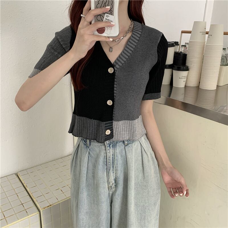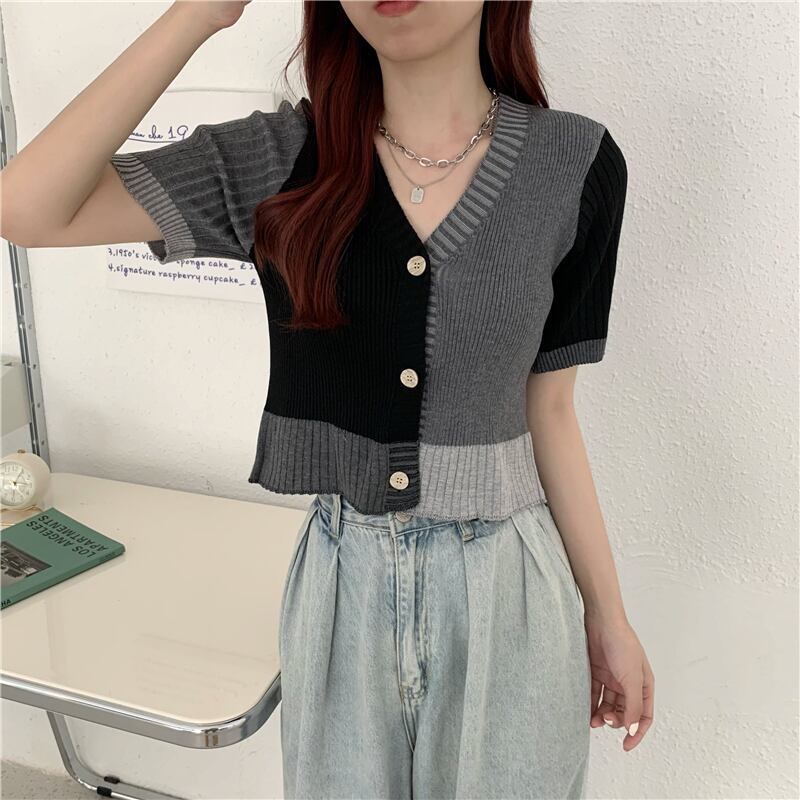 Vネックブラウス サマーカラーショートカーディガンセーター 夏物 ステッチ ガールズファッション84713572269