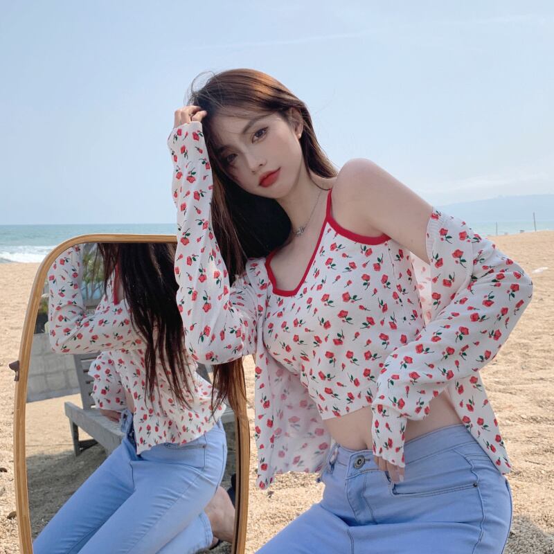 カラーVネックニットレディースフローラルカーディガンサマー ロング 大人ガーリー スウィート キュート カジュアル 夏物 花柄 ガールズファッション54354660491