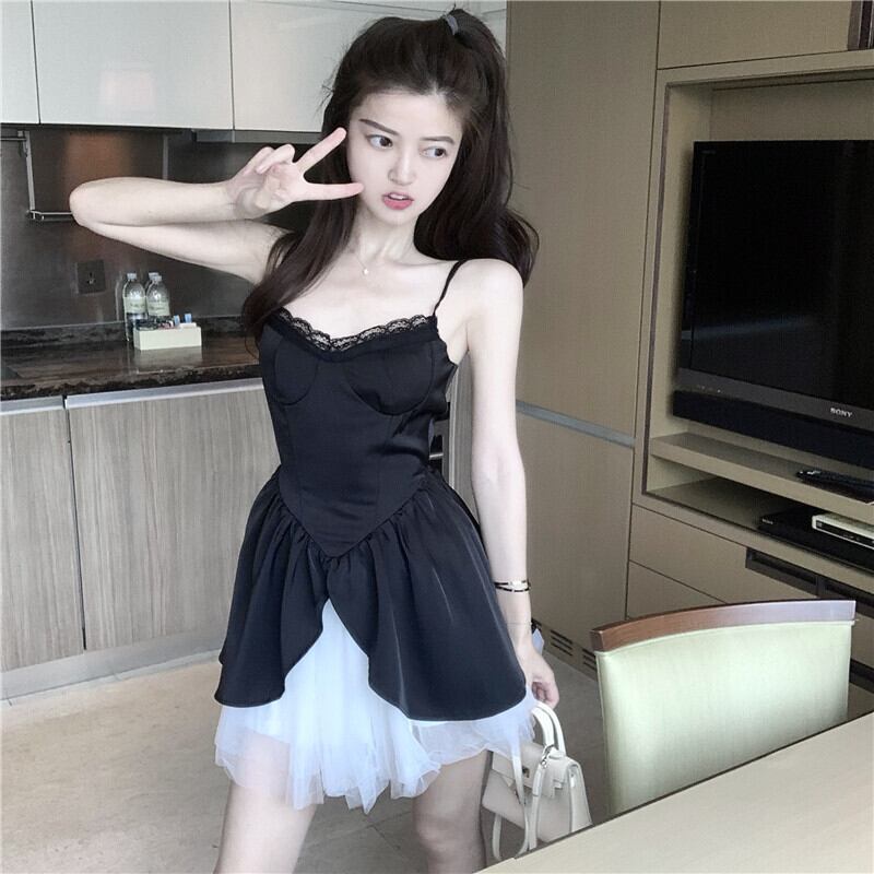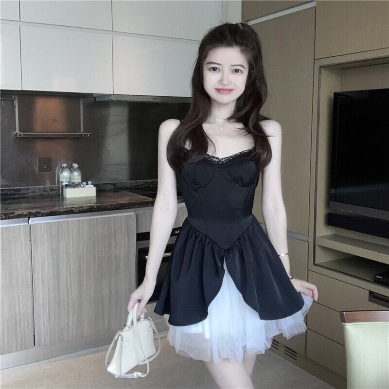 サテンレーストップス メッシュスカート サマー 大人ガーリー スウィート キュート カジュアル ふわふわ 夏物 ガールズファッション91221126487