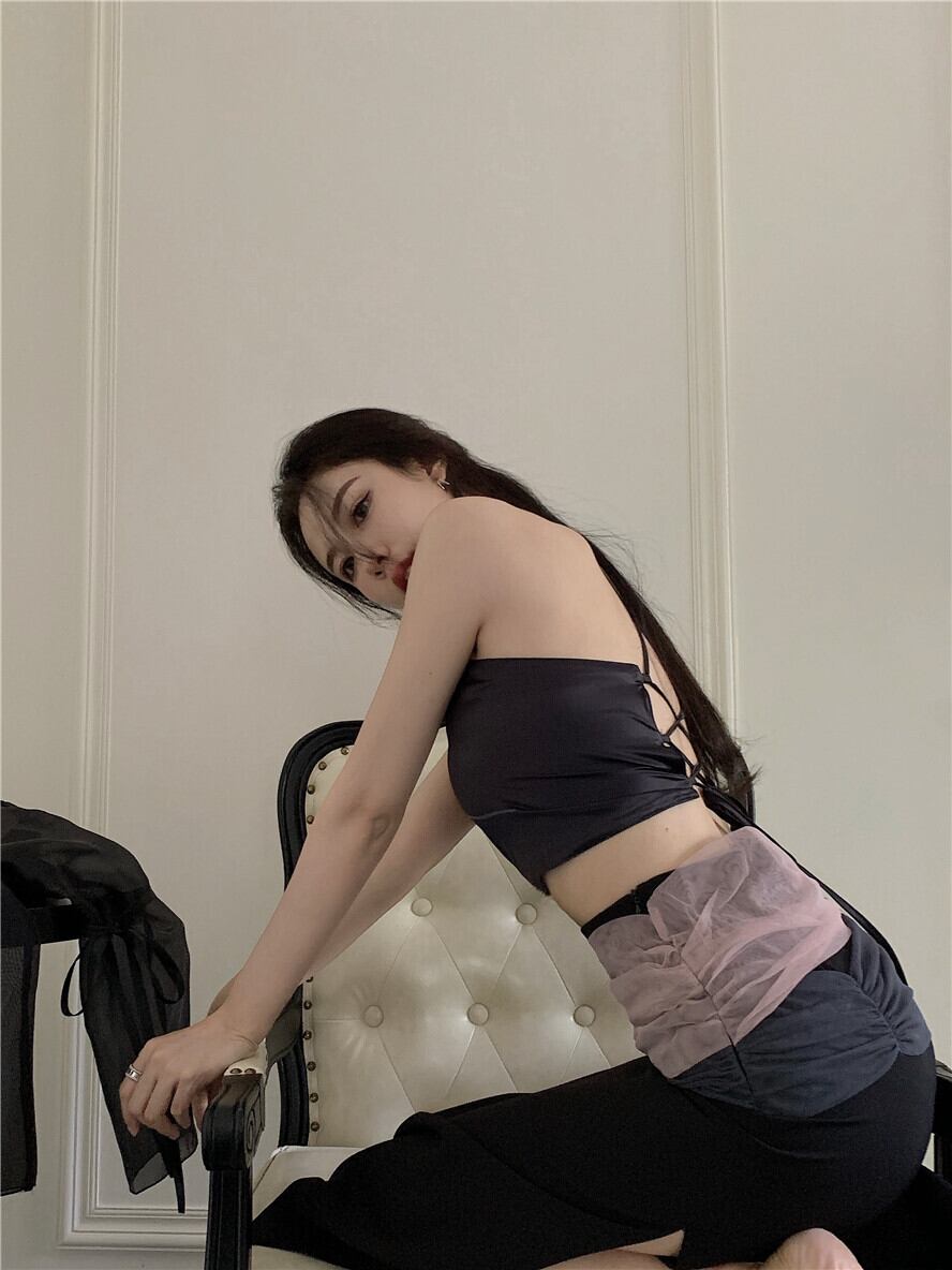 ブラックトップス サマーホルター薄手 大人ガーリー スウィート キュート カジュアル 夏物 ガールズファッション32990590936