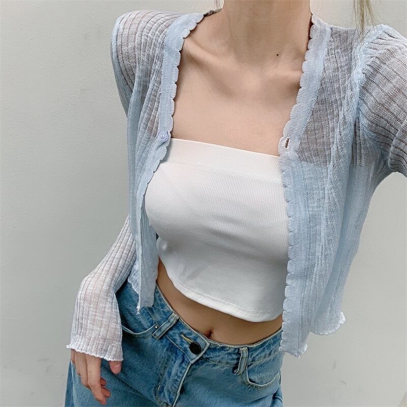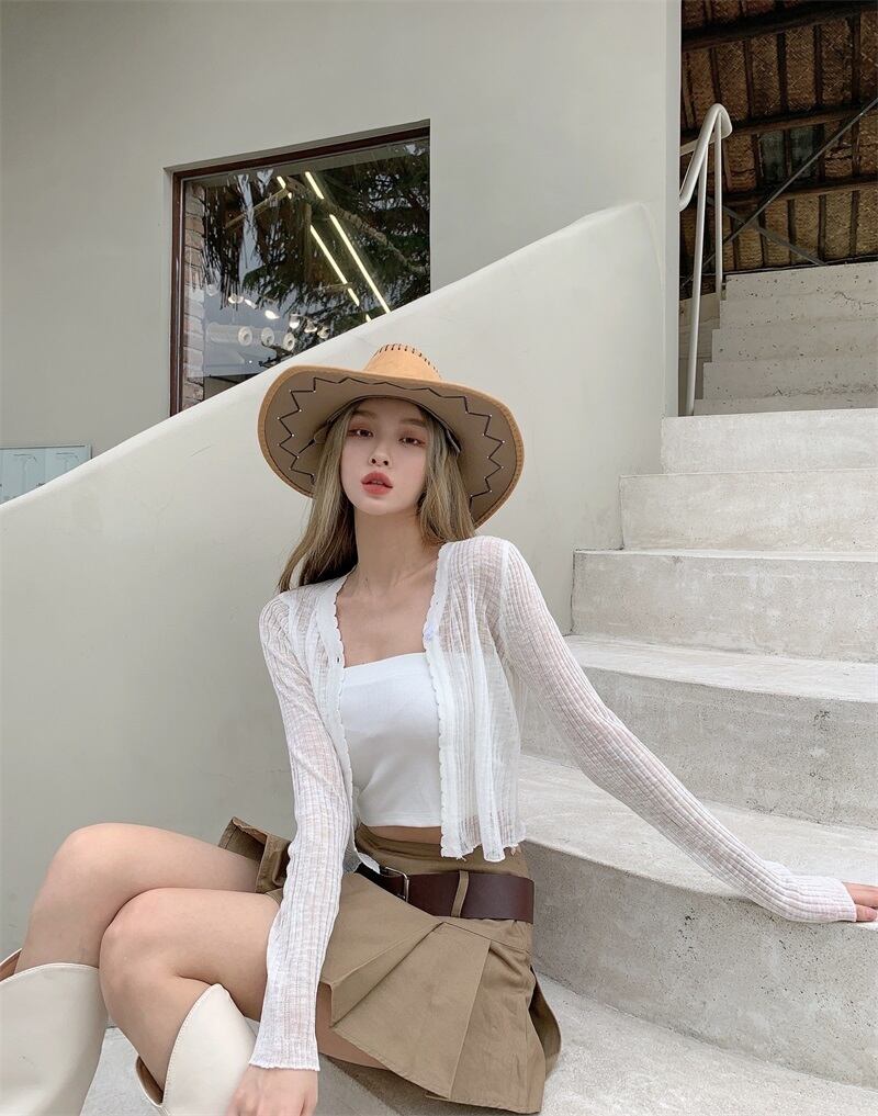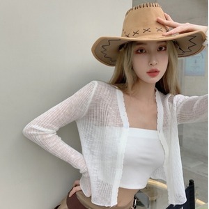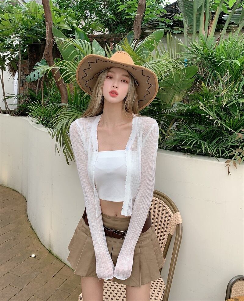 薄手ホワイトニットカーディガントップス サマールーズショートジャケット ロング 夏物 ガールズファッション84960980019