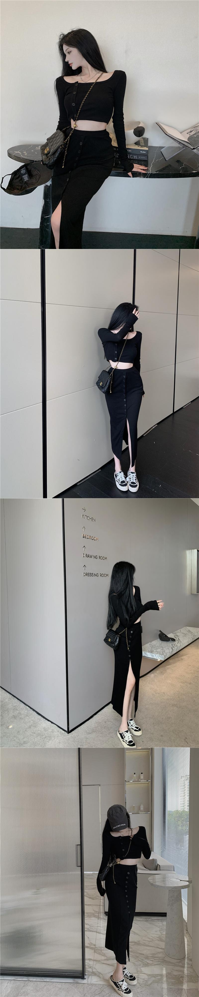 レッドサマーショートトップス レディースハイウェストウェストスカート ロング ストリート 夏物 ピュア ガールズファッション92258571136