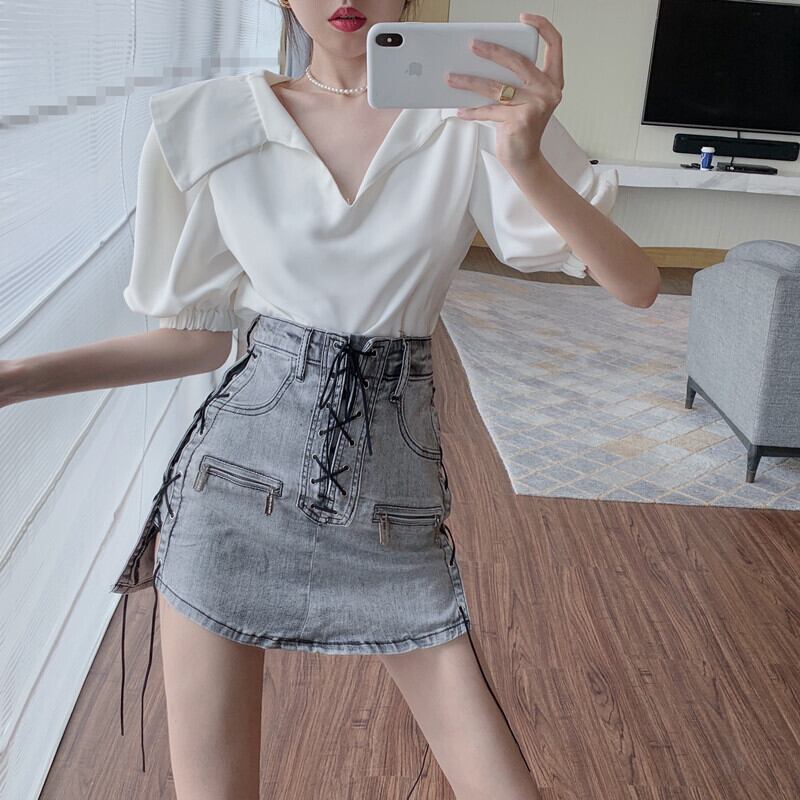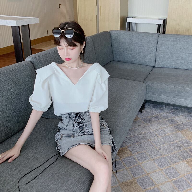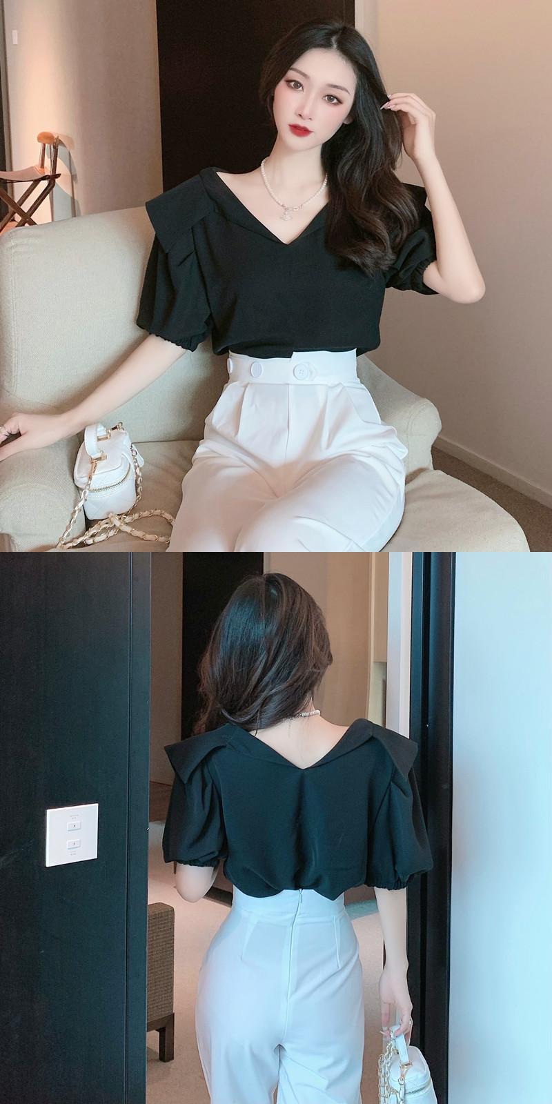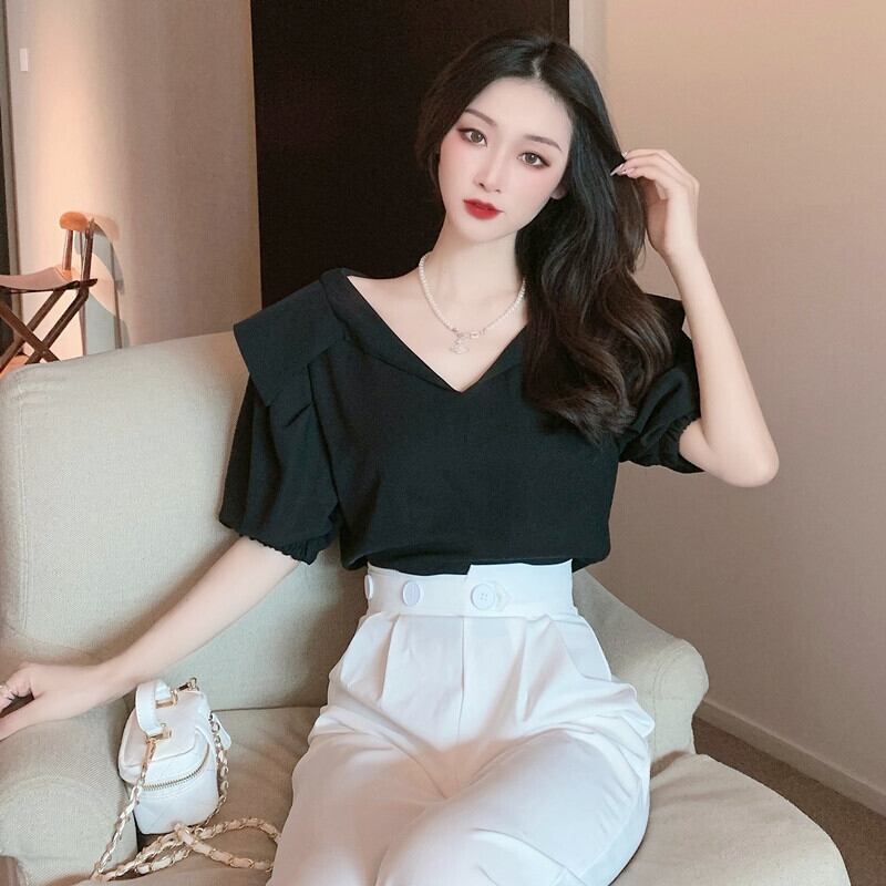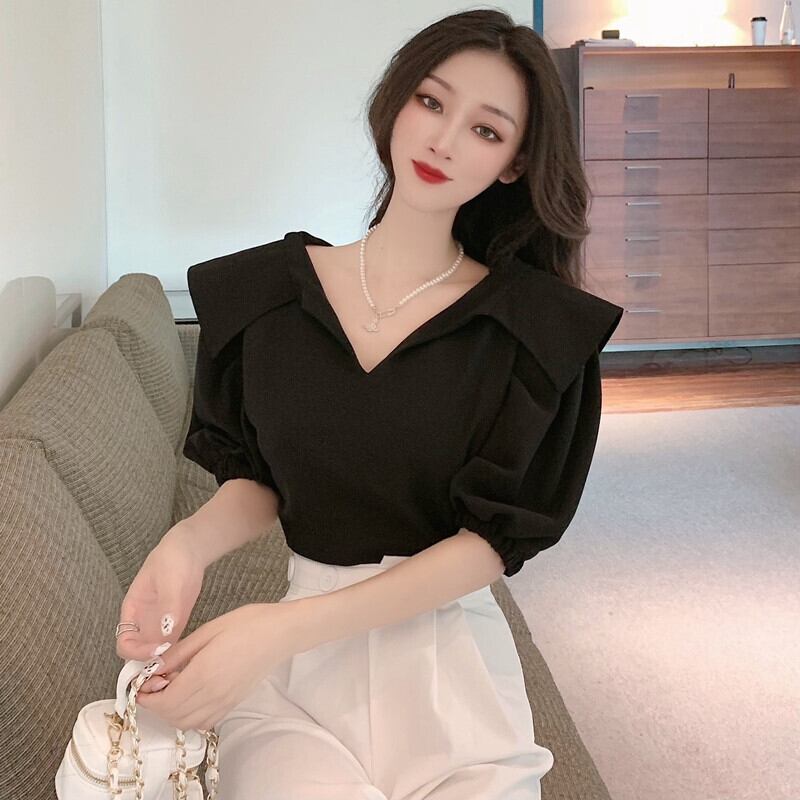 スタンダードスリーブホワイトシフォンシャツ サマーショートスタイルトップス レトロ 大人ガーリー スウィート キュート カジュアル 夏物 ガールズファッション7680828974