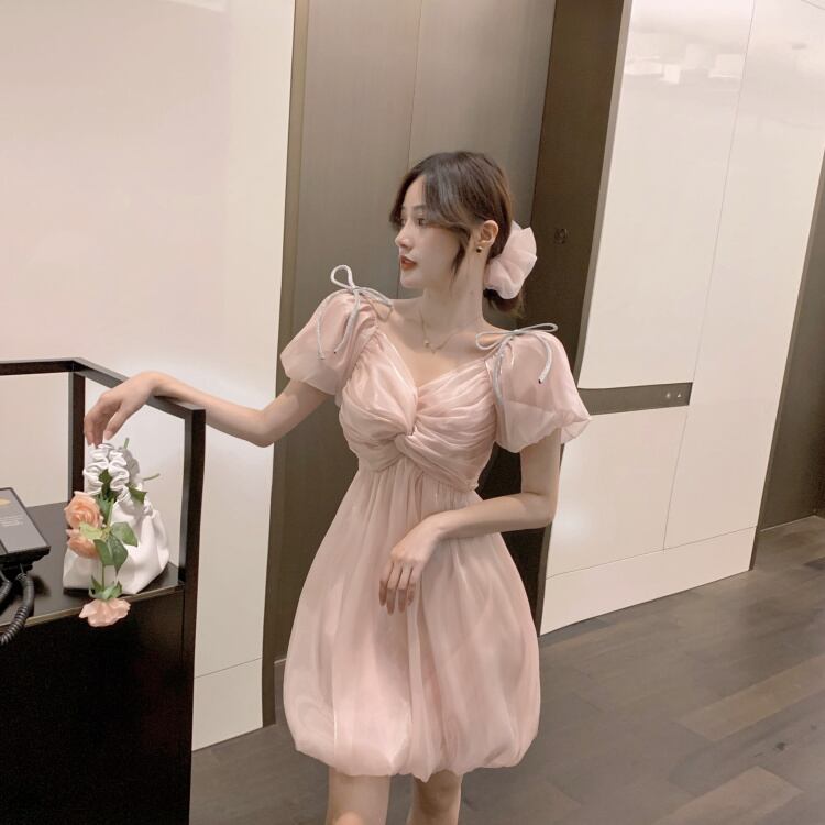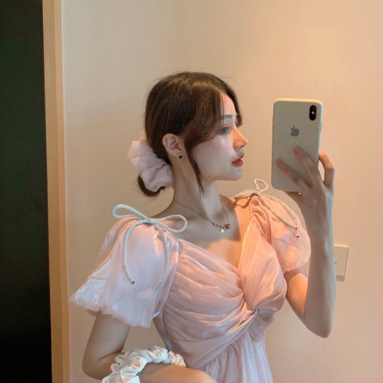 サマースリーブドレス メッシュAラインスカート リボン エレガント 夏物 ガールズファッション39904855159