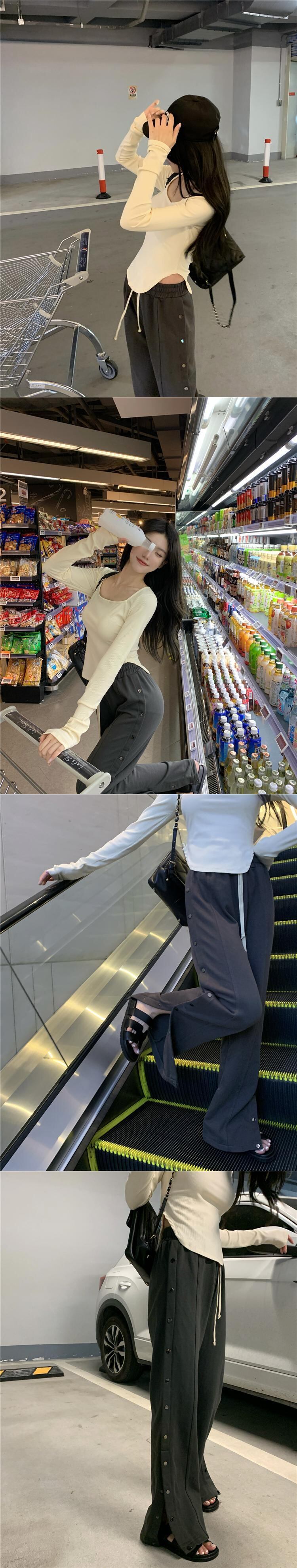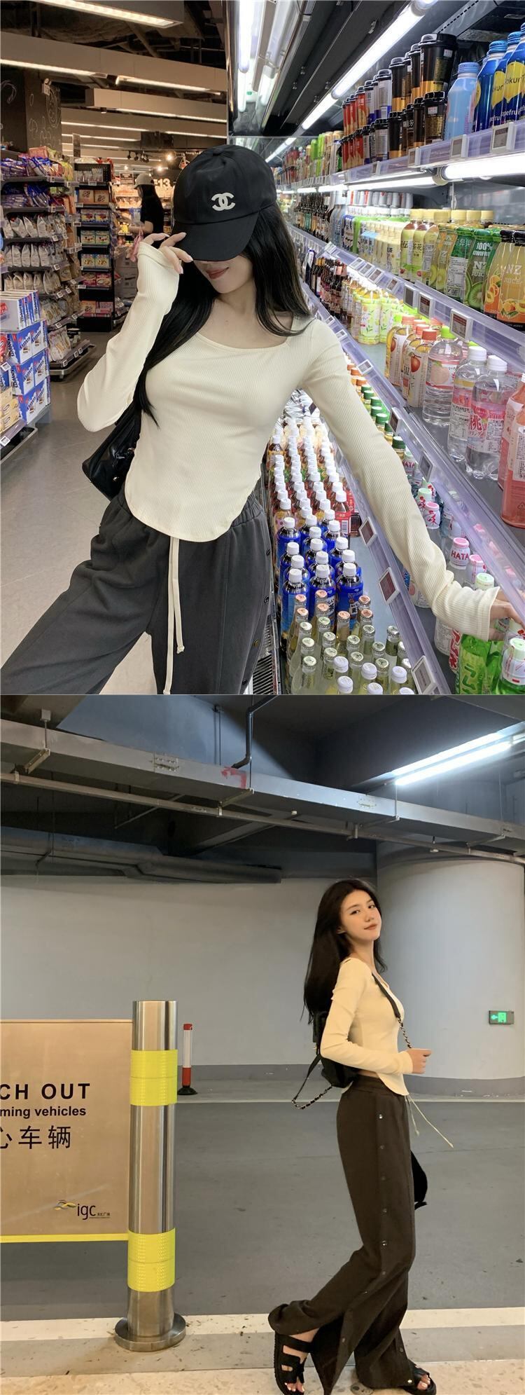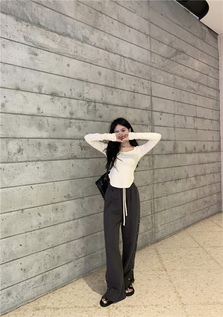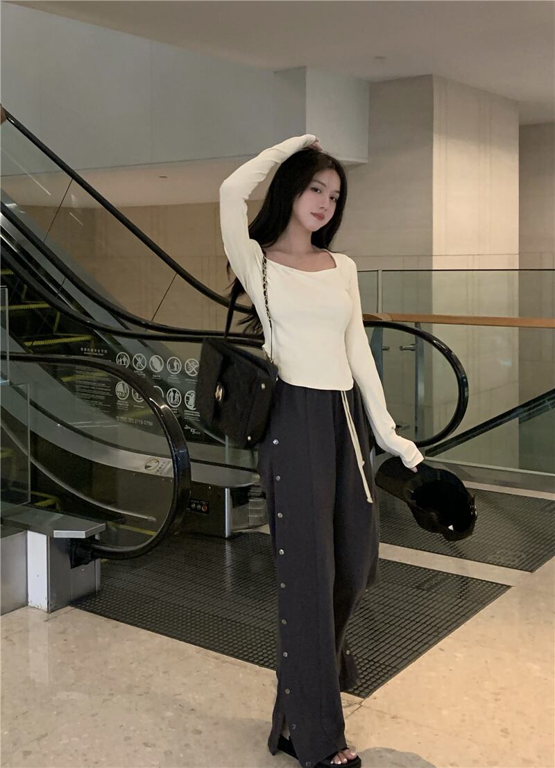 オータムTシャツ ハイウェストスリムパンツ カジュアルサマー ロング 夏物 秋物 ガールズファッション22828132255