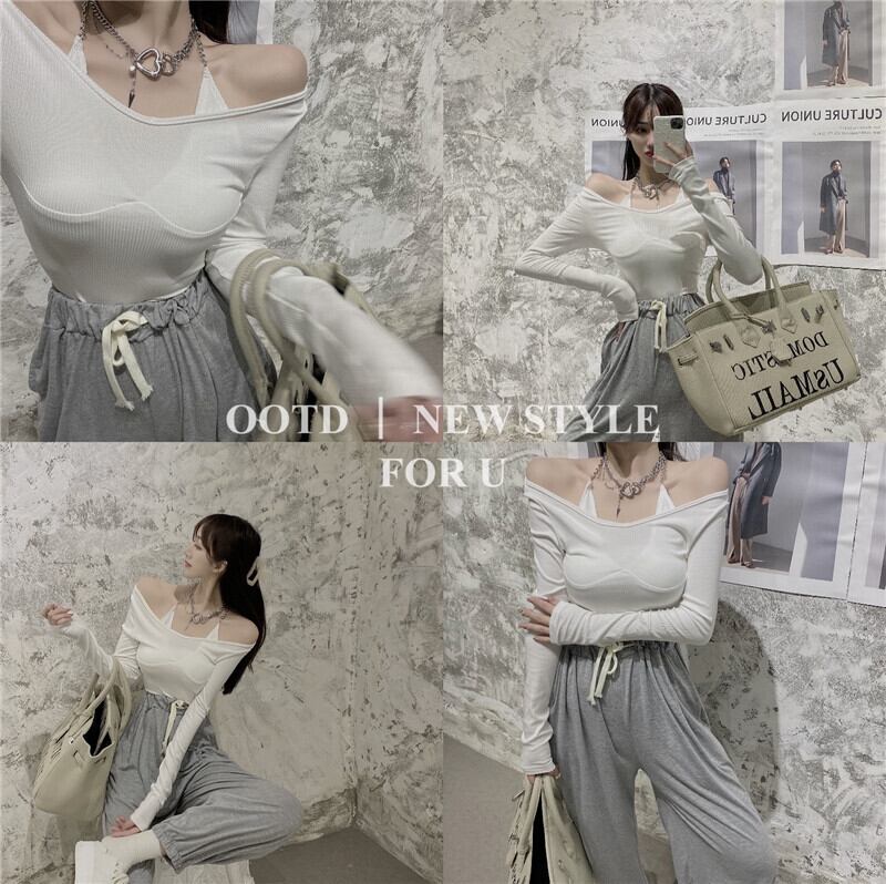 ブラウス オータムスリムTシャツ シャツ ホワイト ロング 大人ガーリー スウィート キュート カジュアル 秋物 ピュア ガールズファッション5860690736