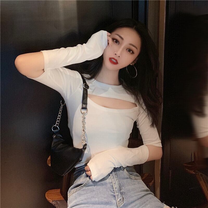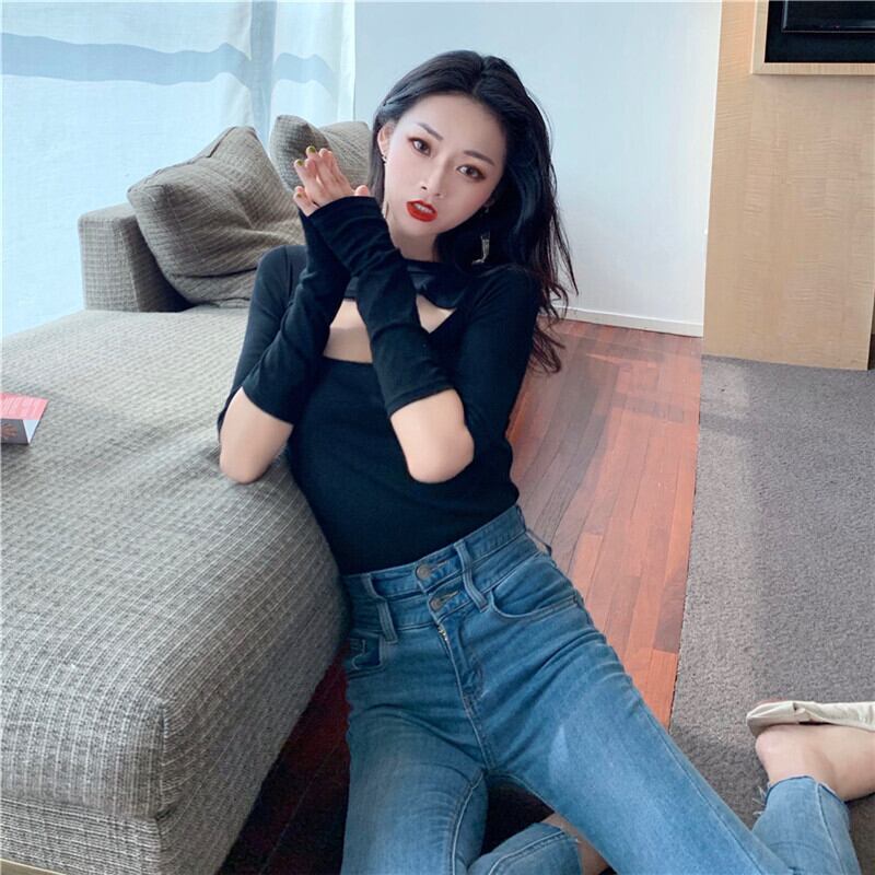 ブラックトップス オータムスリムTシャツ ロング 秋物 ガールズファッション83329210785