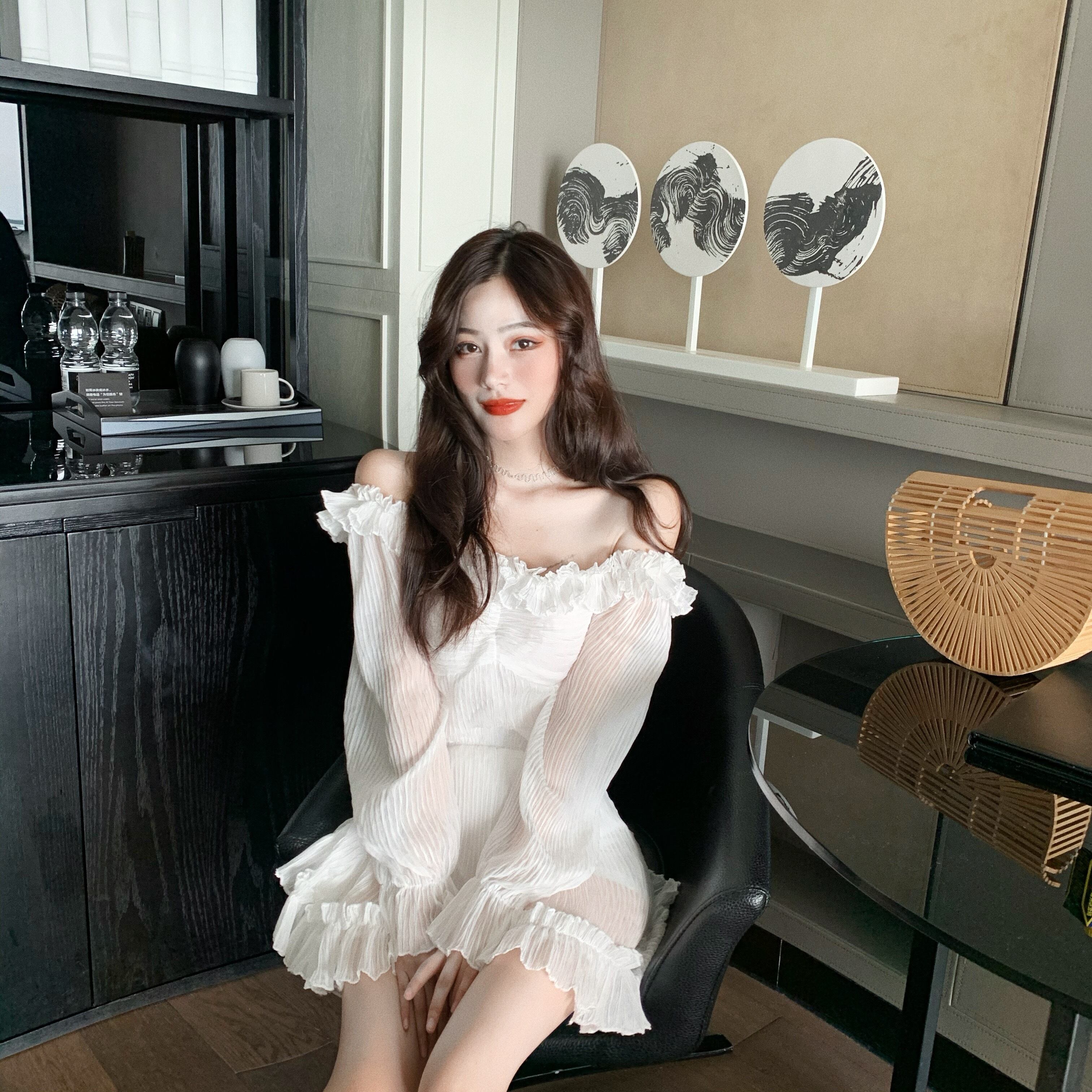 ホワイトサマーカラーシフォントップス スカート ロング ストリート 夏物 ガールズファッション22228526132