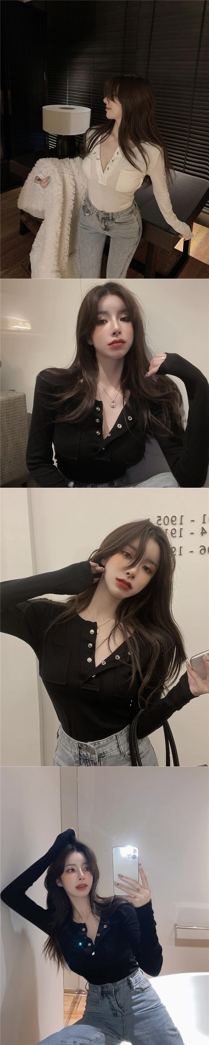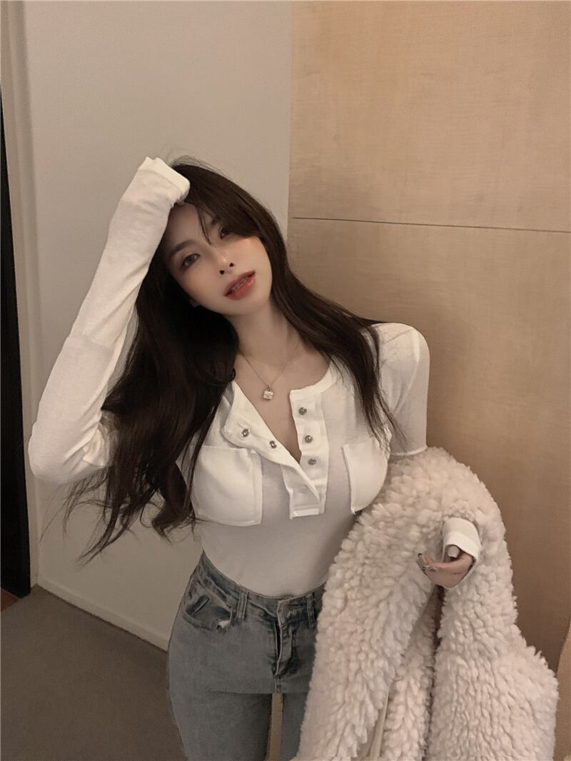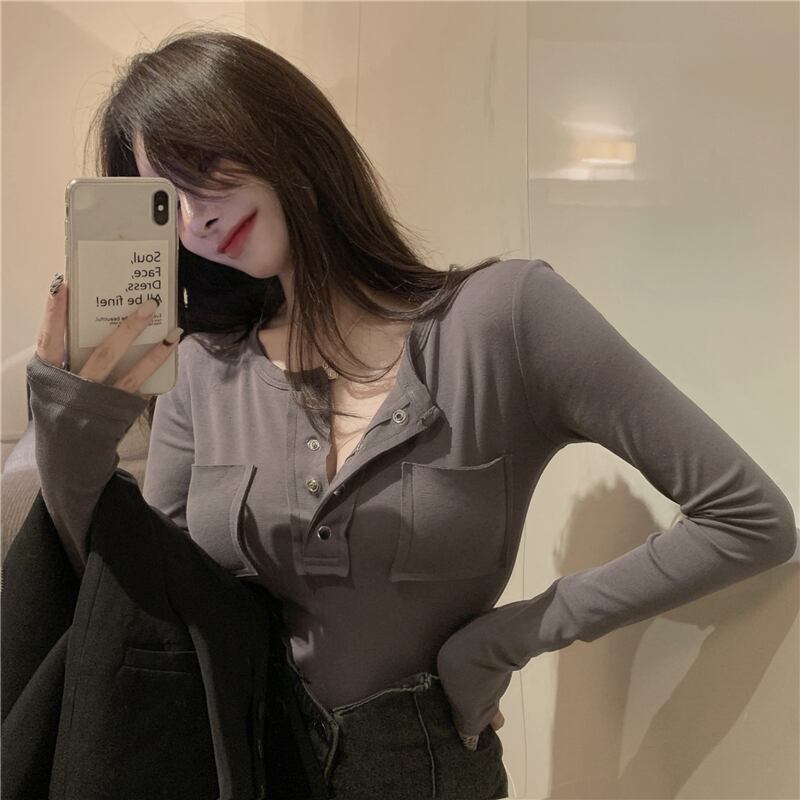 ベーシックソリッド カラートップス オータムスリムTシャツ ロング 秋物 ソリッドカラー ガールズファッション45100016425