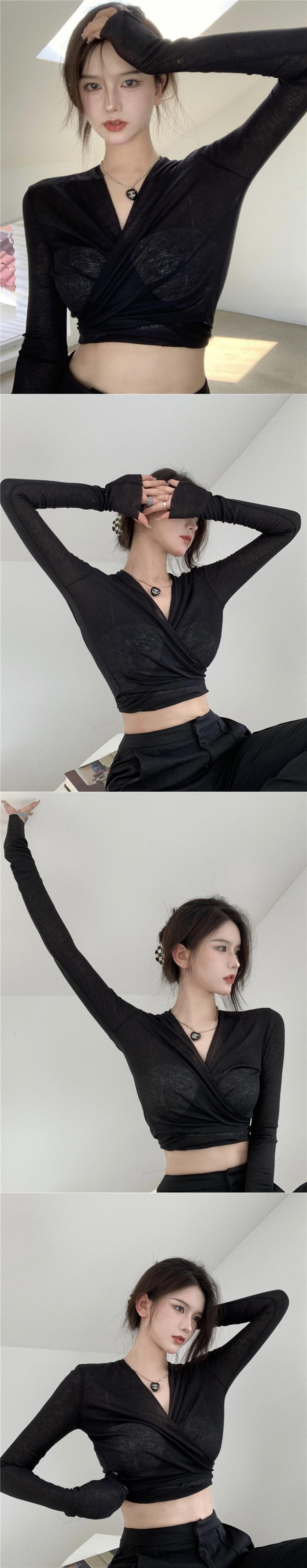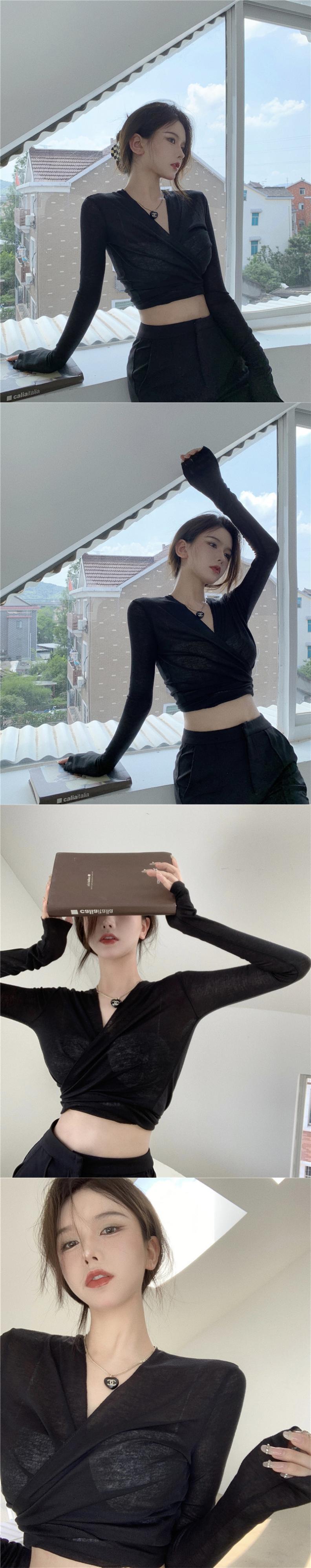 薄手ニットセーター サマークロスストラップ スリムショートブラウス 夏物 ガールズファッション5509797017