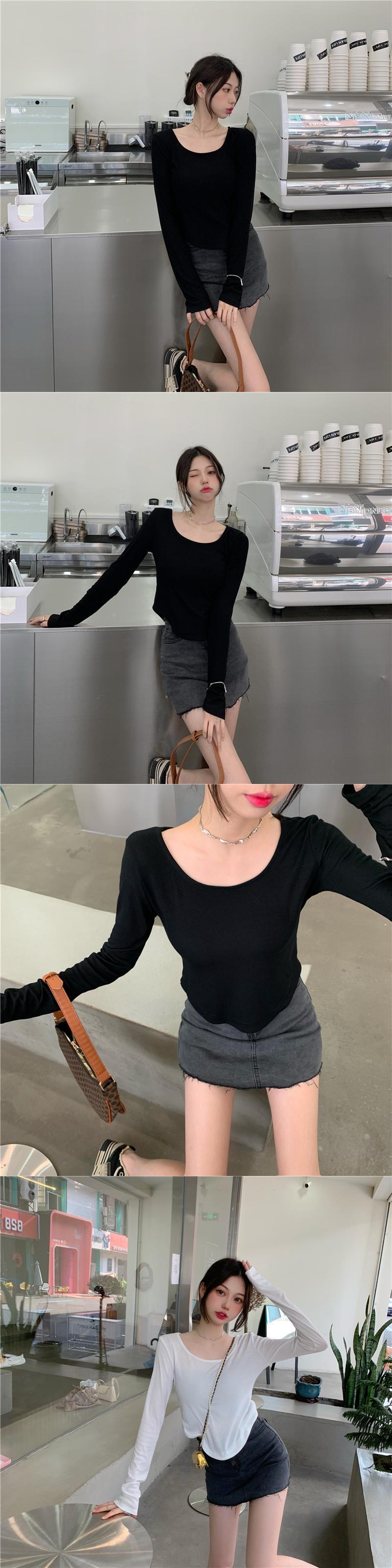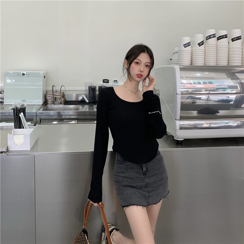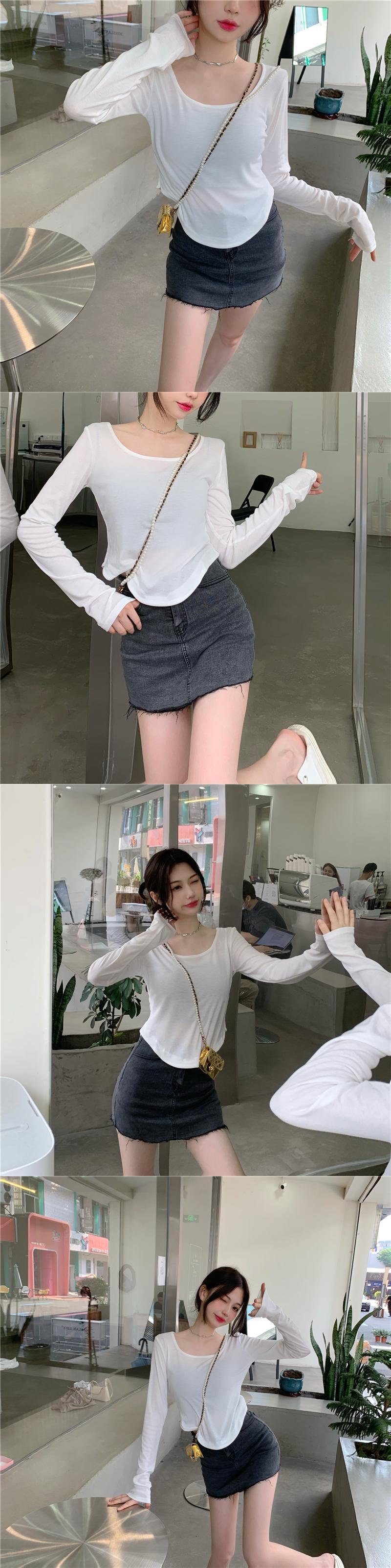 オータムレッドカラーTシャツ ロング 秋物 ピュア ガールズファッション20503815156