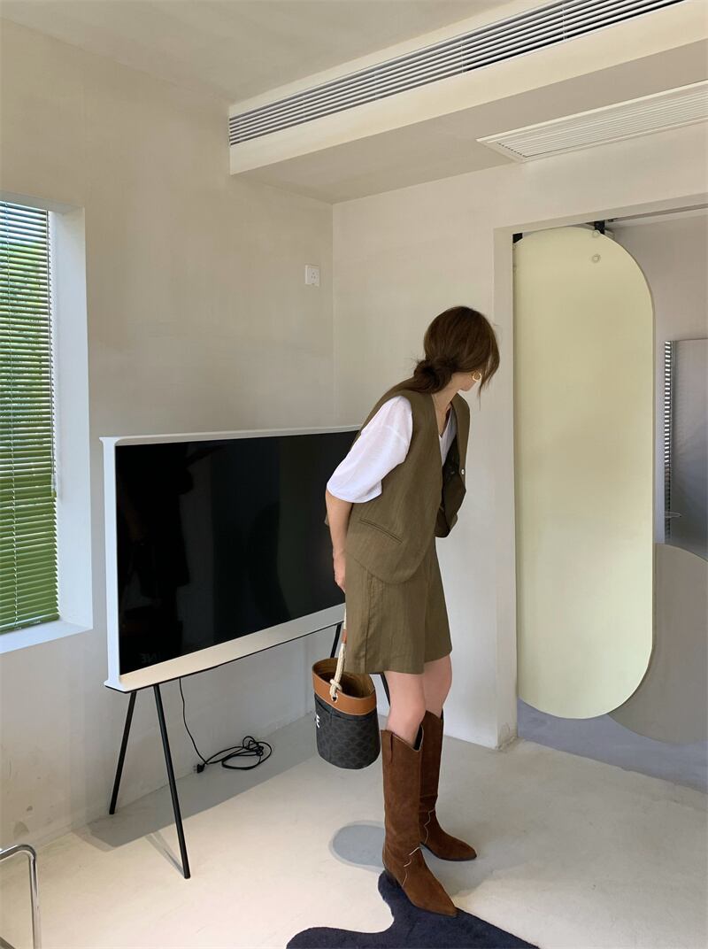 サマールーズカーキジャケット 薄手Vネックノースリーブ 夏物 ガールズファッション73984682923