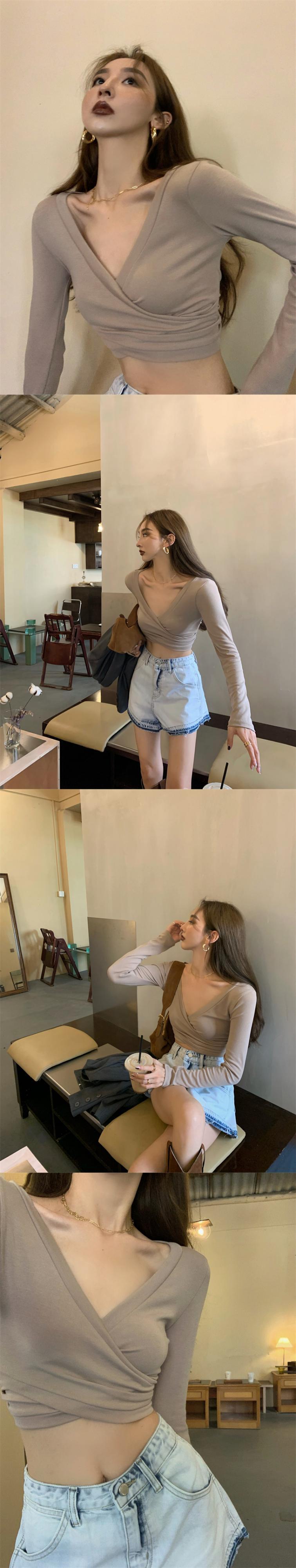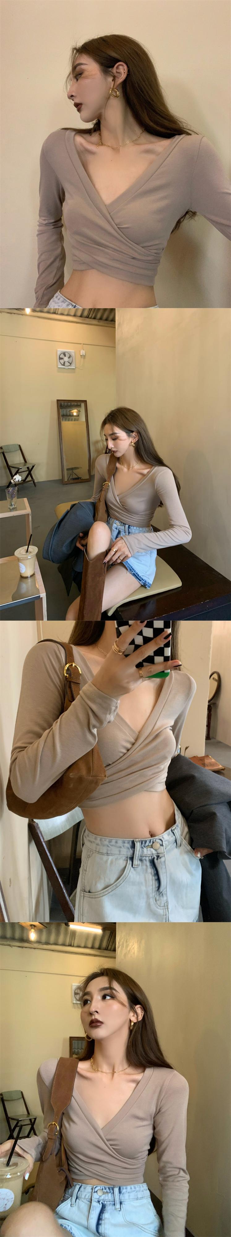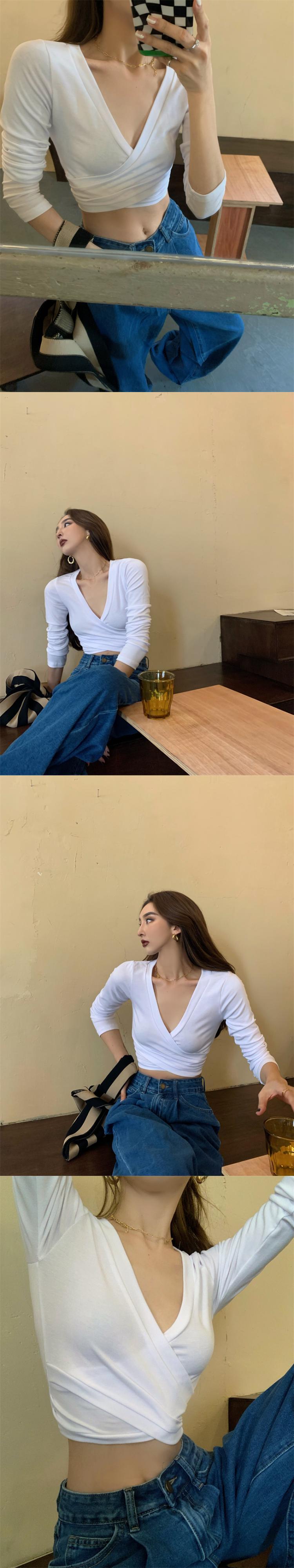 クロスVネックショートTシャツ サマートップス ロング 夏物 ピュア ガールズファッション88614174663