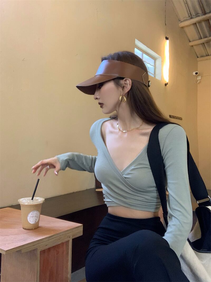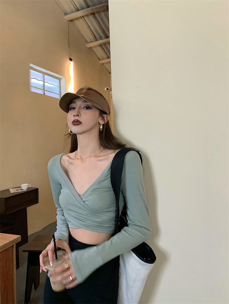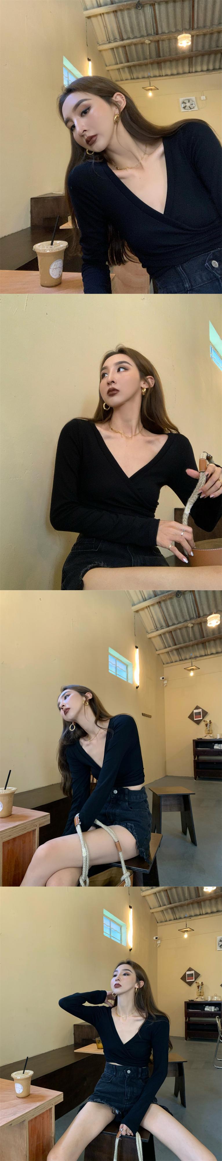クロスVネックショートTシャツ サマートップス ロング 夏物 ピュア ガールズファッション88614174663