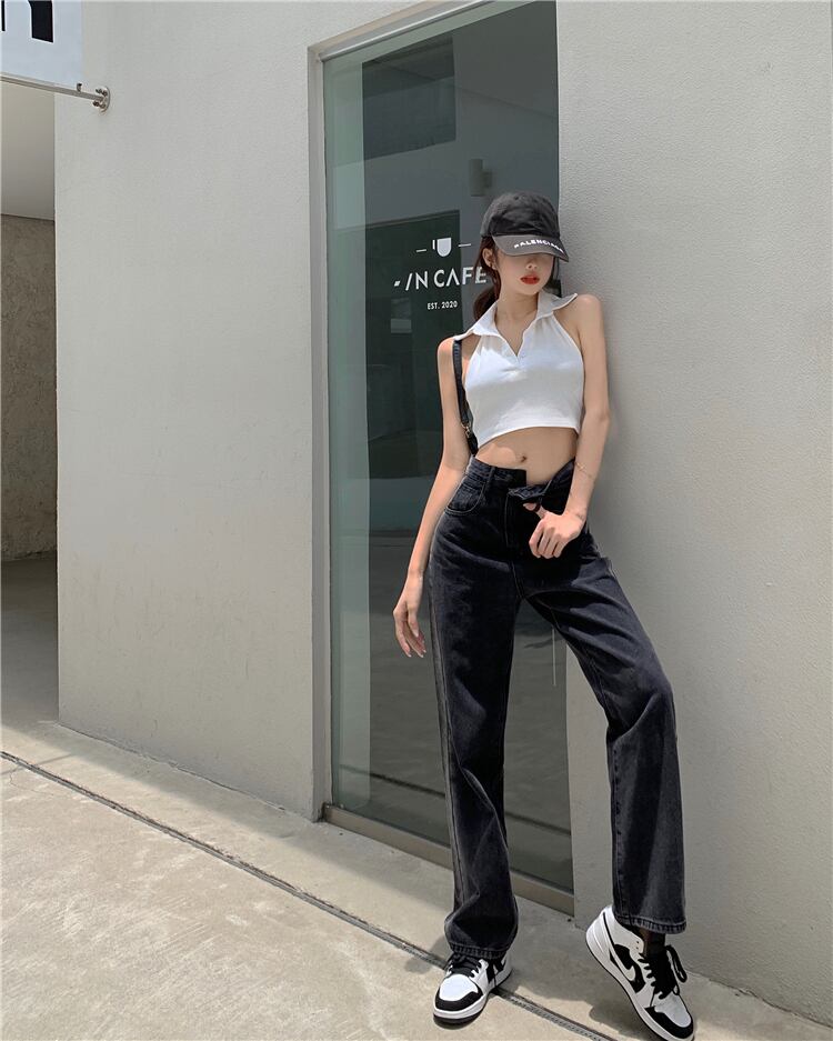 サイドカラーパンツ サマーハイウェスト薄手ジーンズ 夏物 ガールズファッション40303990927