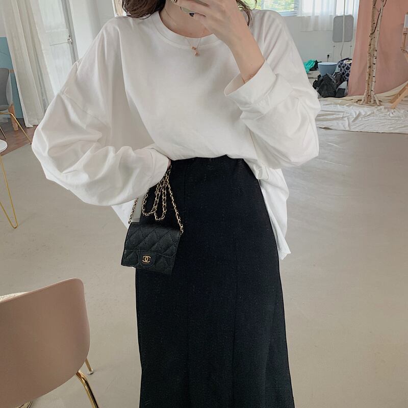 色:白いTシャツ,グレースカート,黒スカート