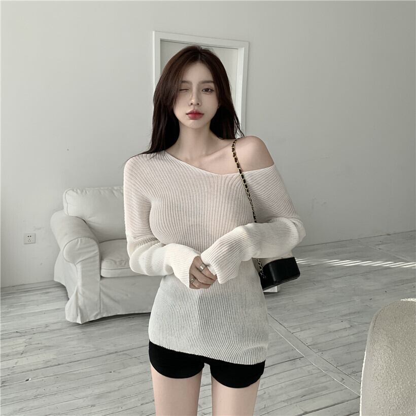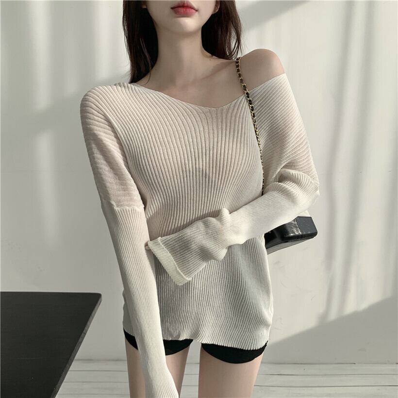 サマー薄手セーター Vネックホワイトブラウス ロング 夏物 ガールズファッション83701396726
