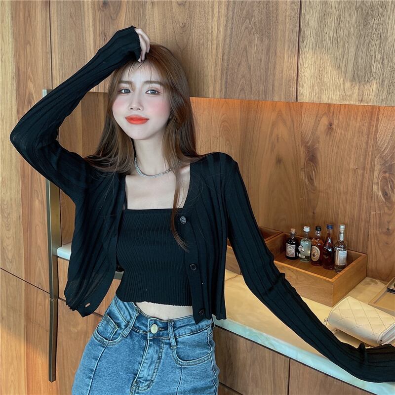 ニットカーディガンサマーVネックカジュアルショートトップス ロング 大人ガーリー スウィート キュート 夏物 シルク ガールズファッション55703026405