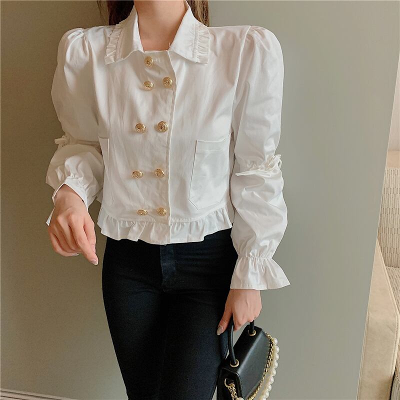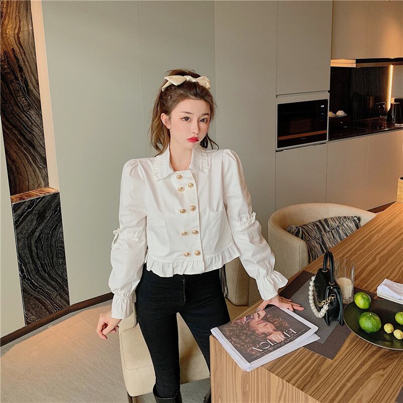 ダブルブレストショートジャケット サマースタイルホワイトトップス 夏物 ガールズファッション29850166003