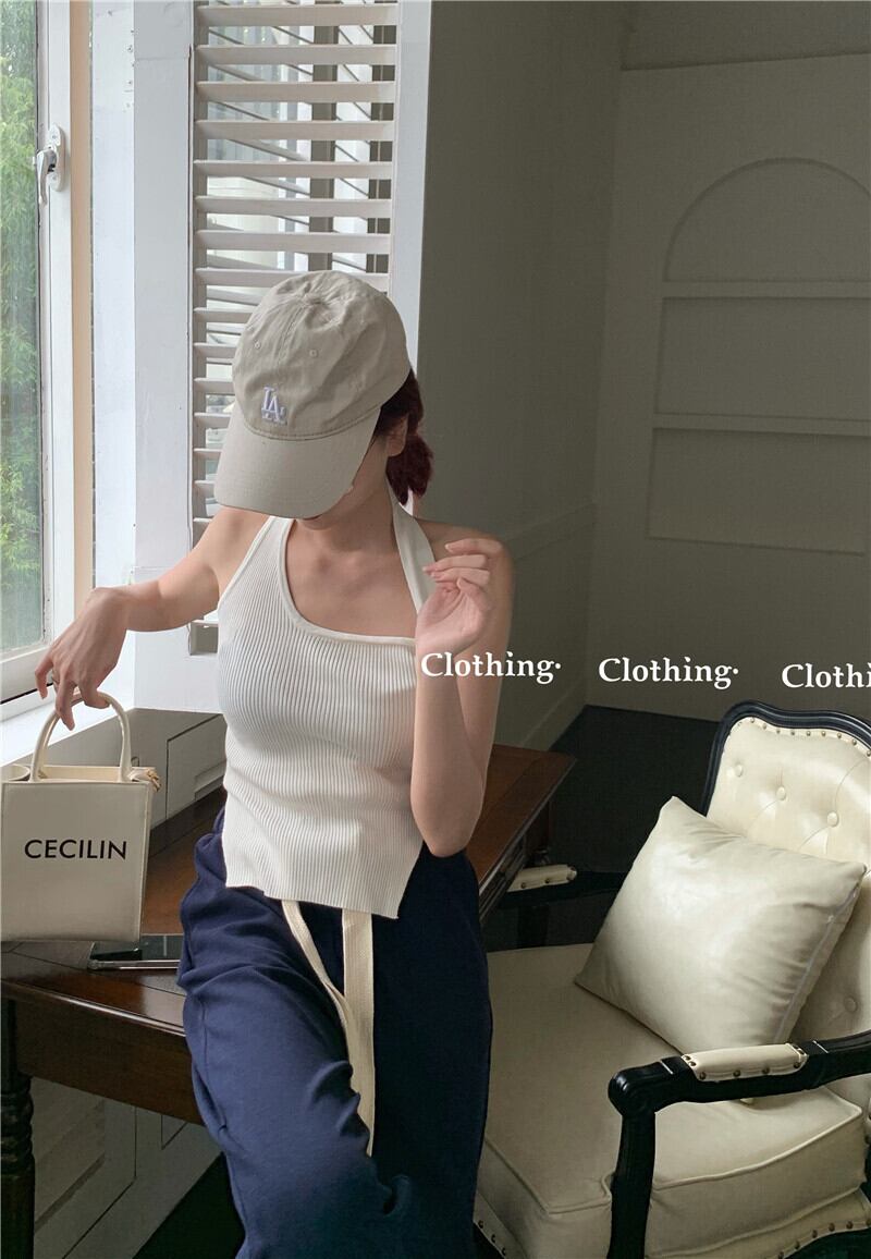 ホルターサマーホワイトスリムトップス 夏物 ガールズファッション71124386917