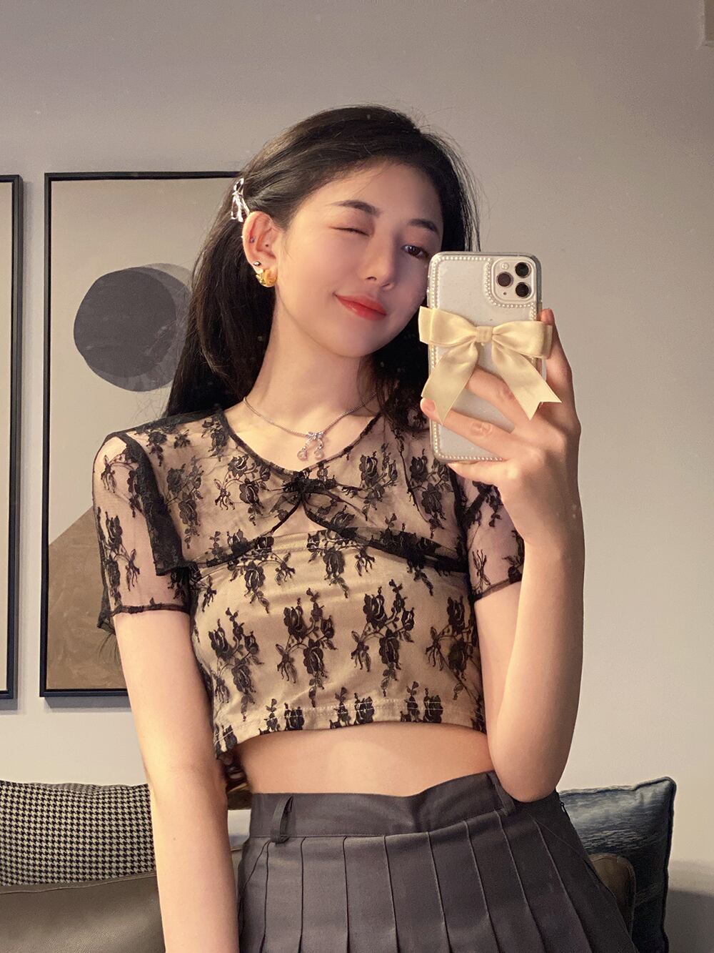 レースTシャツ サマー薄手ショートトップス 夏物 ピュア ガールズファッション10369890574
