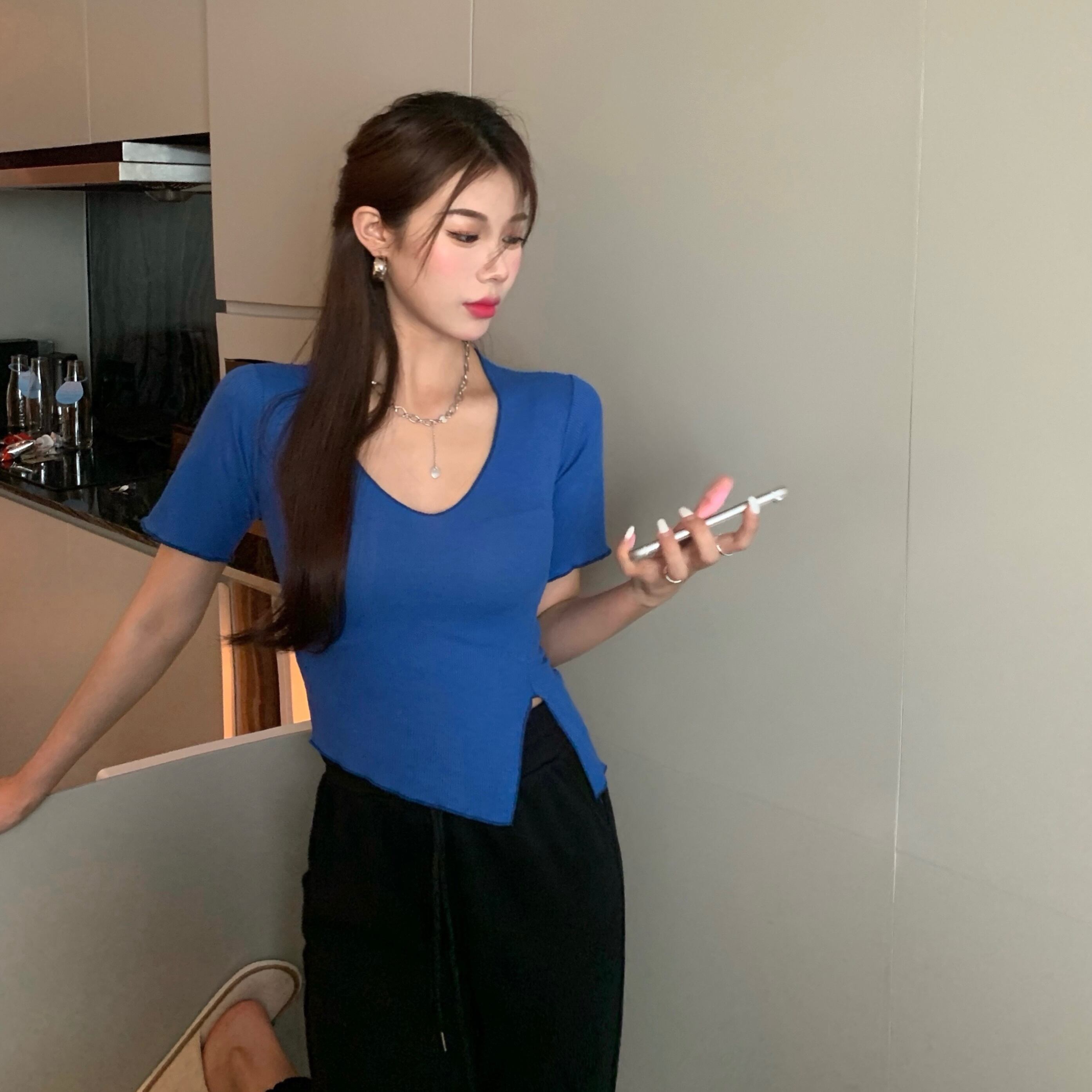 Tシャツ サマーソリッド カラートップス 夏物 ソリッドカラー ガールズファッション97705443480