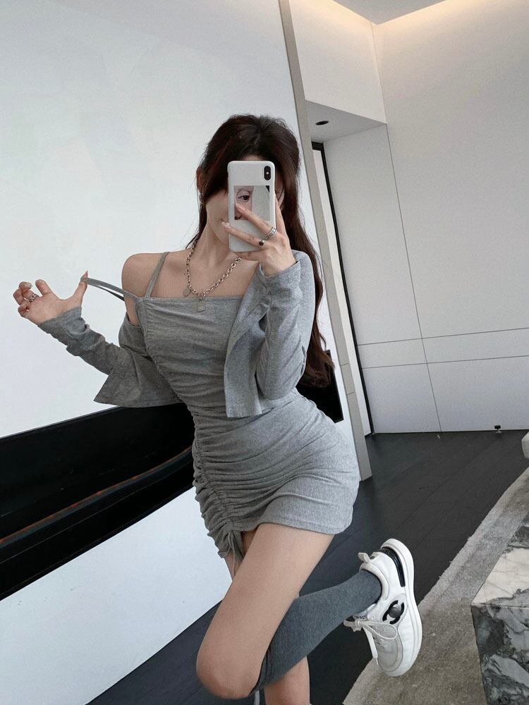 サマーギャザードレス レディースショートカーディガン ロング ストリート 夏物 ガールズファッション35402983376