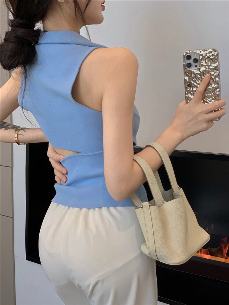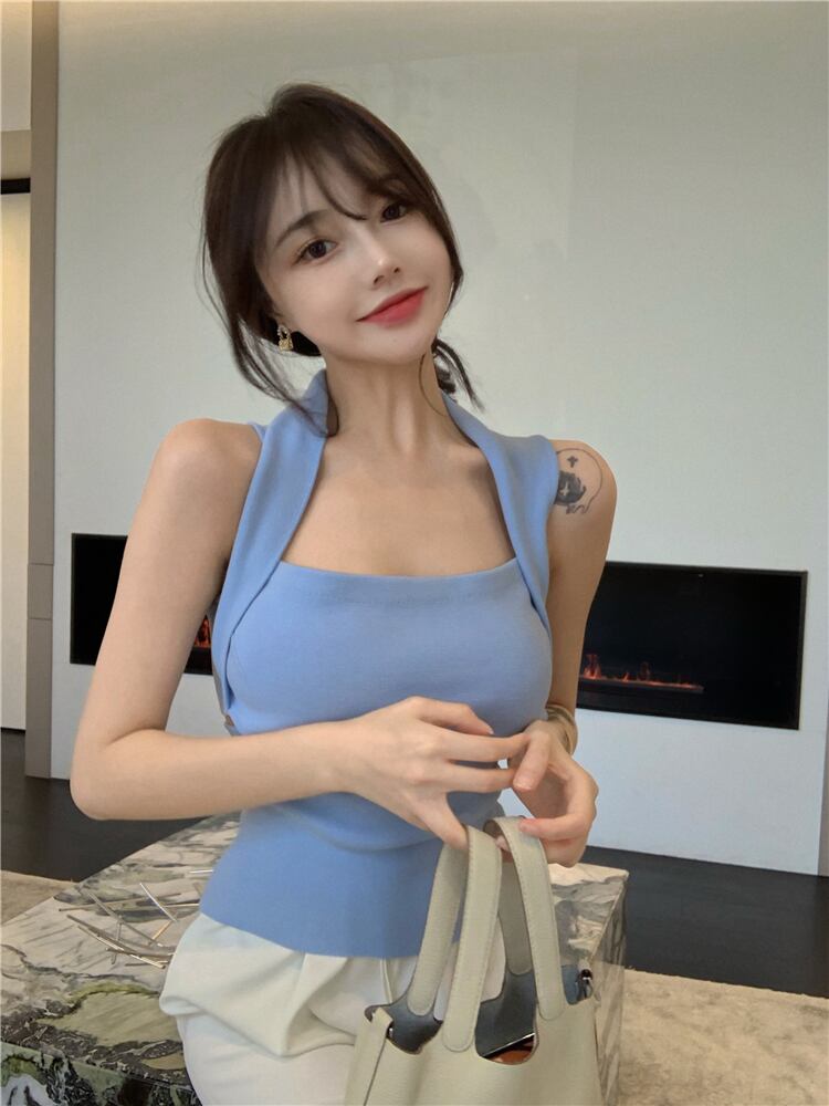 ブルーサマーショートホルタートップス 夏物 ピュア ガールズファッション89509103452