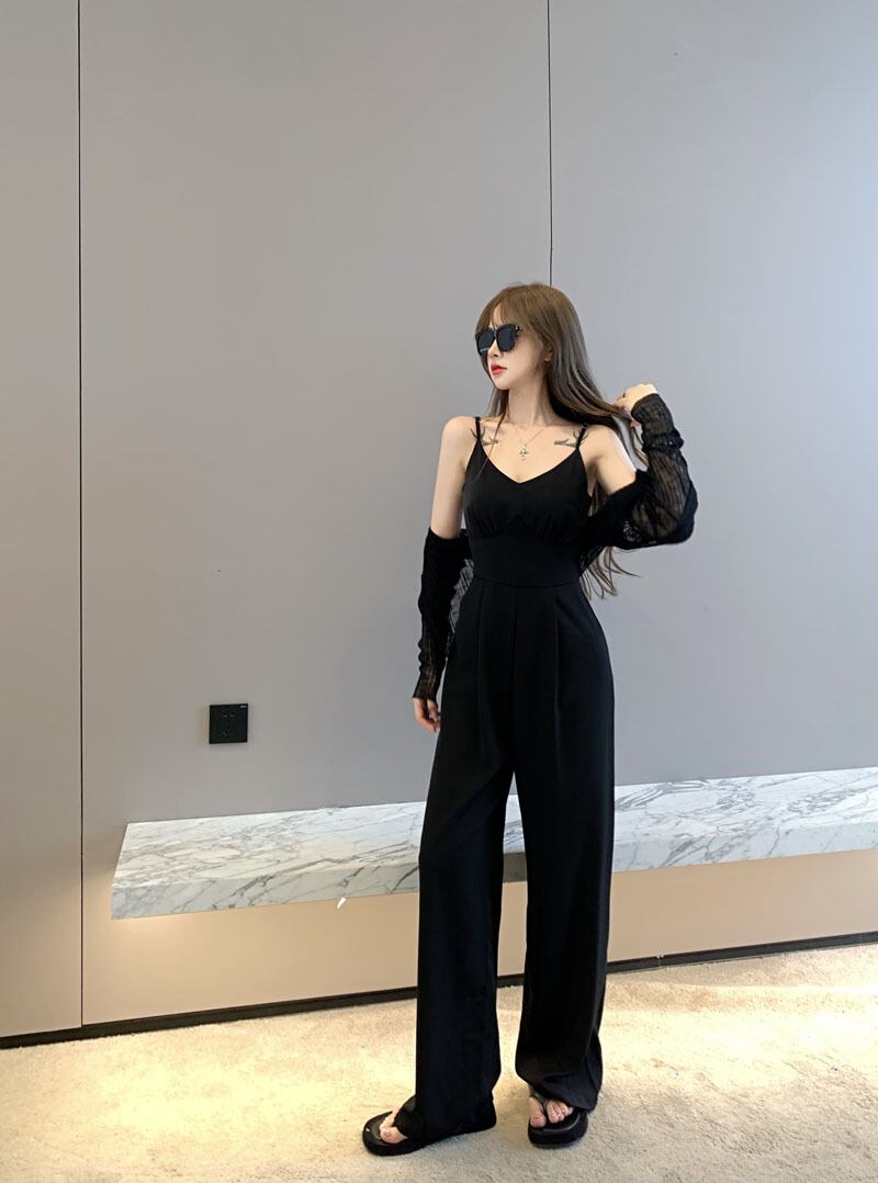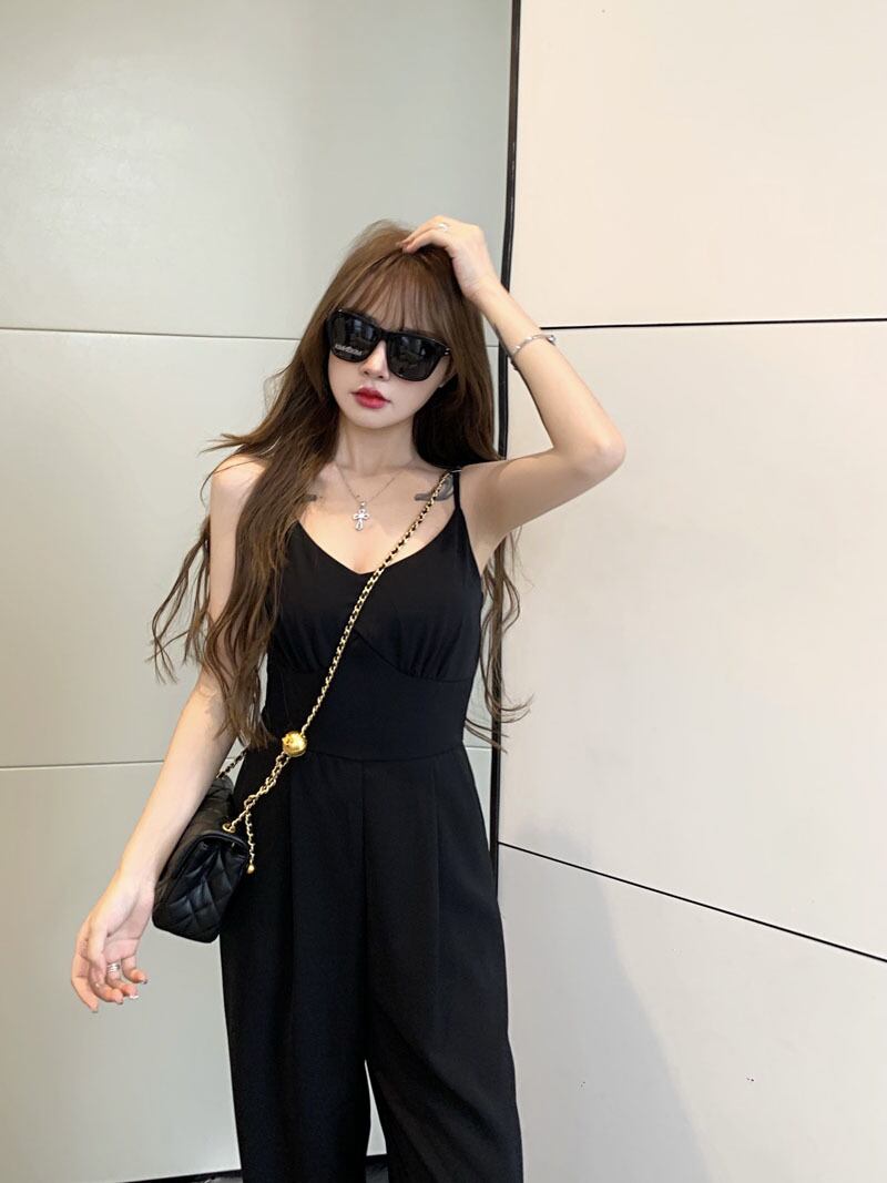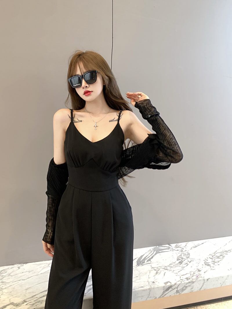 パンツ サマーハイウェストウェストレッドジャンプスーツ オールインワン スリムブラック 夏物 ガールズファッション50362503274