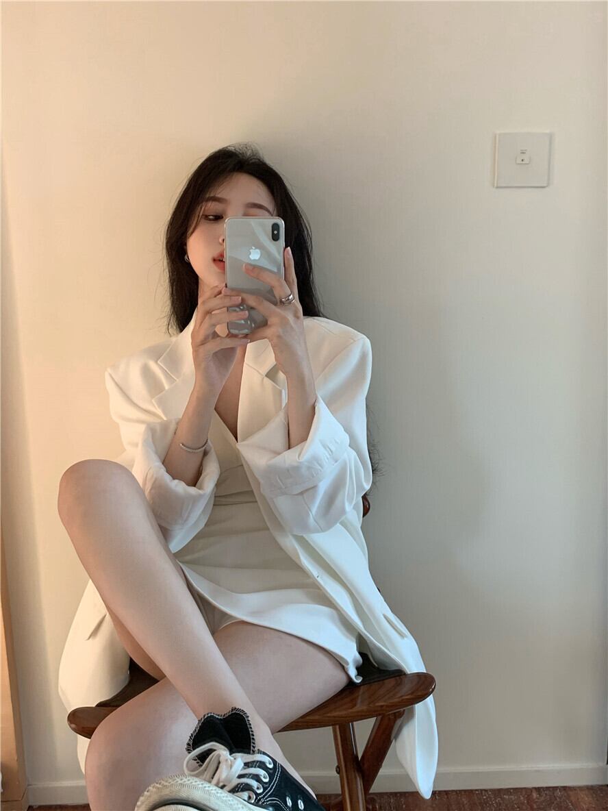 カジュアル薄手ジャケット オータムスタイルルーズホワイトシャツ ロング ストリート 秋物 ガールズファッション29046797221