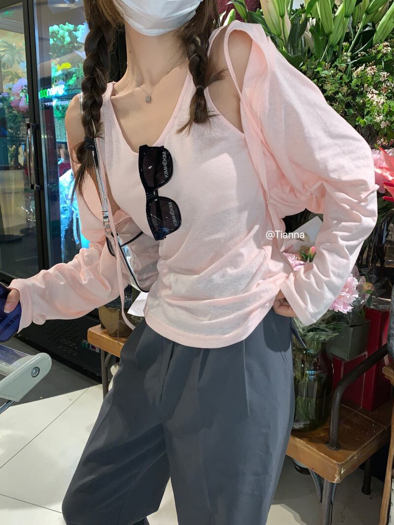 薄手サマーカジュアルノースリーブシャツ ピンク 夏物 ピュア ガールズファッション14264065420