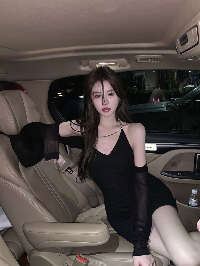 Vネックウェストドレス サマーチェーン 薄手スカート 夏物 ガールズファッション34480836635