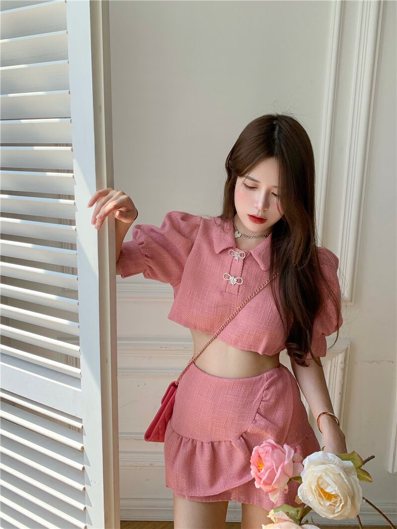 レッドショートスリーブトップス スカート サマー リボン 夏物 ガールズファッション52930934300