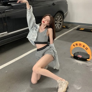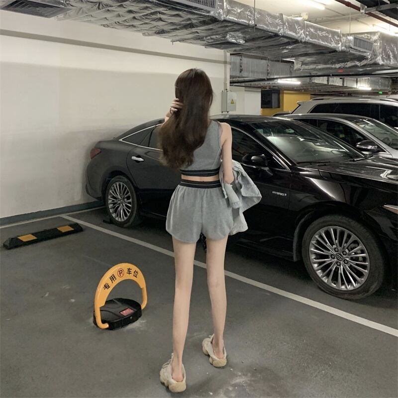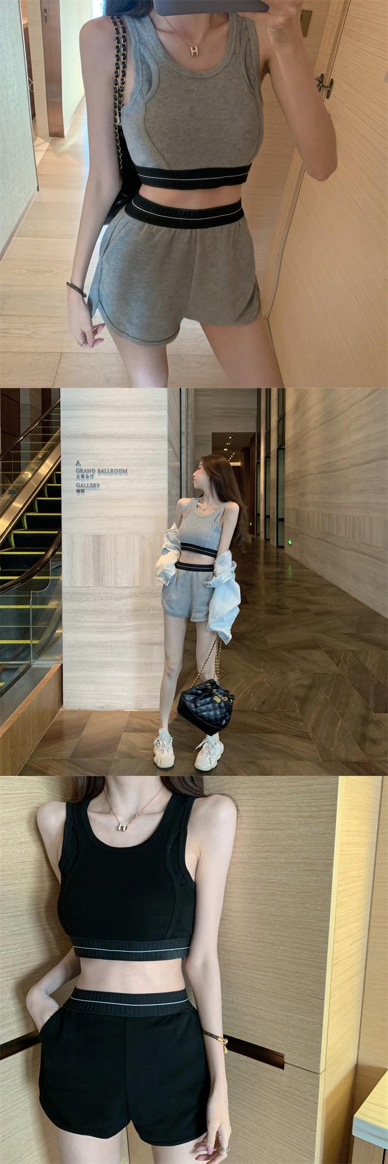 サマーショートクロップドノースリーブスタンダードハイウェストショーツ パンツ レトロ 夏物 ブルマー ガールズファッション43495231700