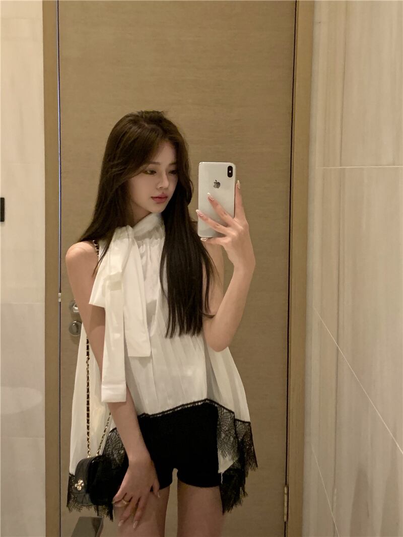 ホワイトシャツ ノースリーブスリムカジュアルショーツ サマー 大人ガーリー スウィート キュート 夏物 ブルマー ガールズファッション43643874504