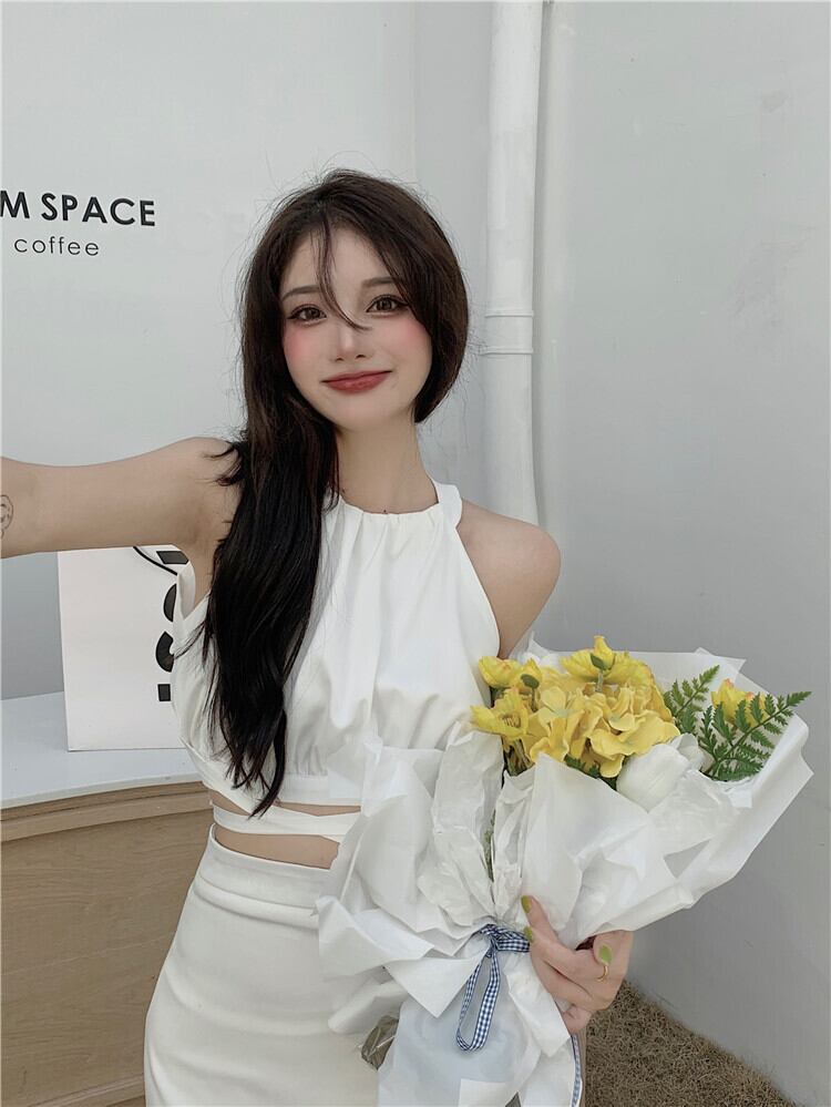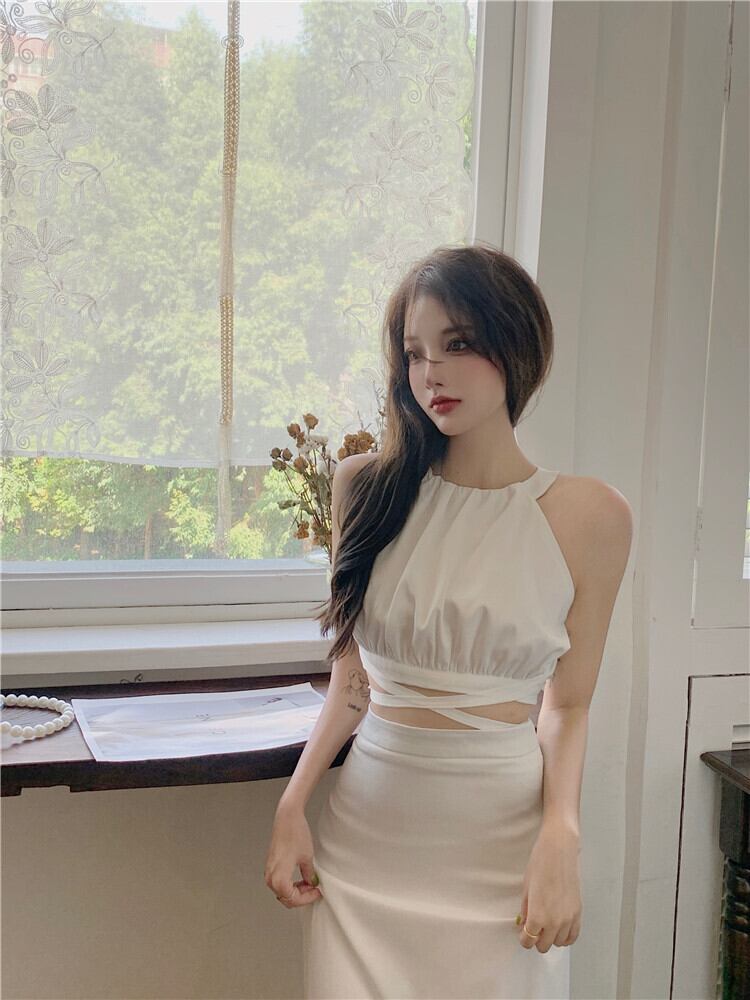 スタンダードトップス レッドハイウェストウェストスカート サマー レトロ 夏物 ガールズファッション41219239341