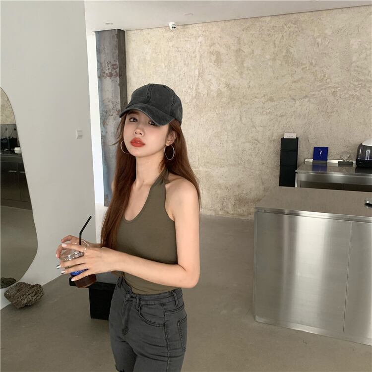 サマーホルターブラックショートノースリーブトップス レディース 半袖 ハーフスリーブ 夏物 ガールズファッション37420778250