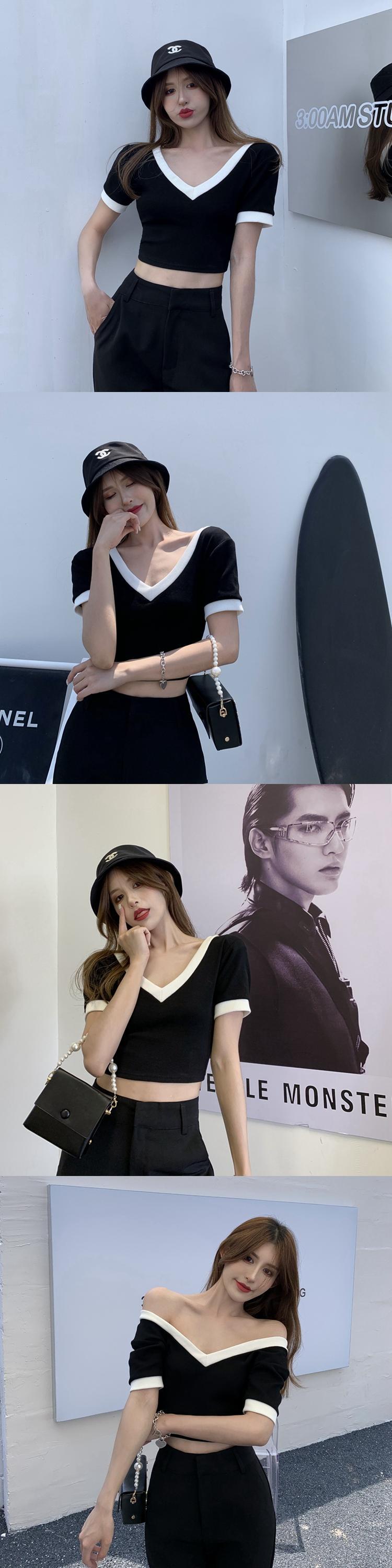 ウェストカラーショートサマー 夏物 Vネック Tシャツ ガールズファッション46967050903