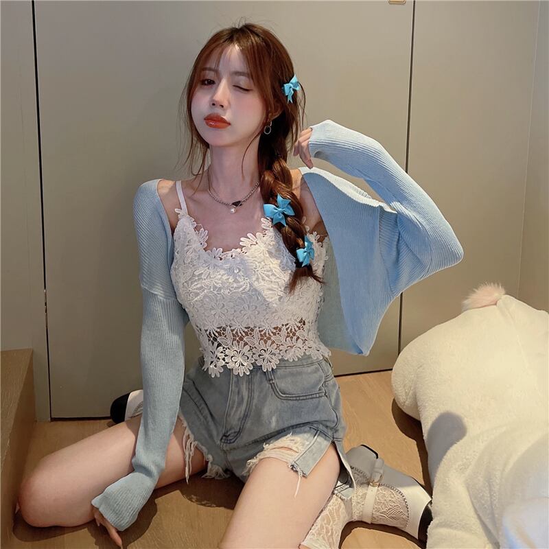 薄手セーター サマートップス ショートカーディガン ロング 大人ガーリー スウィート キュート カジュアル 夏物 ガールズファッション8506742785