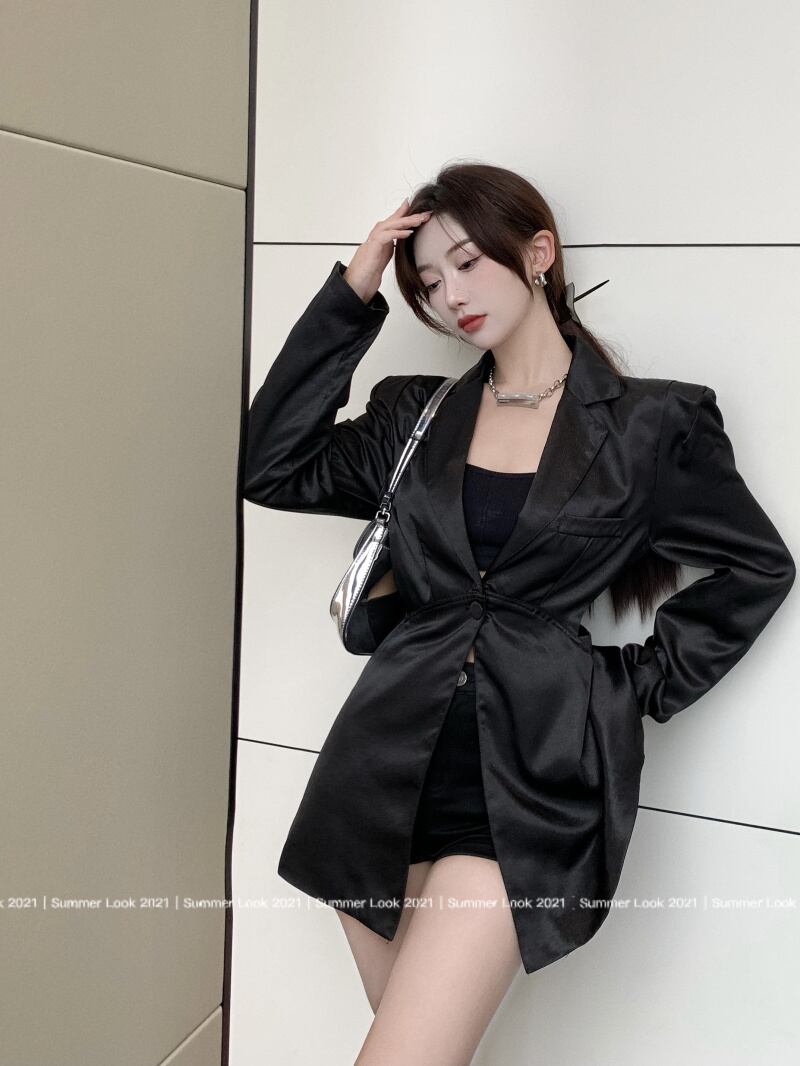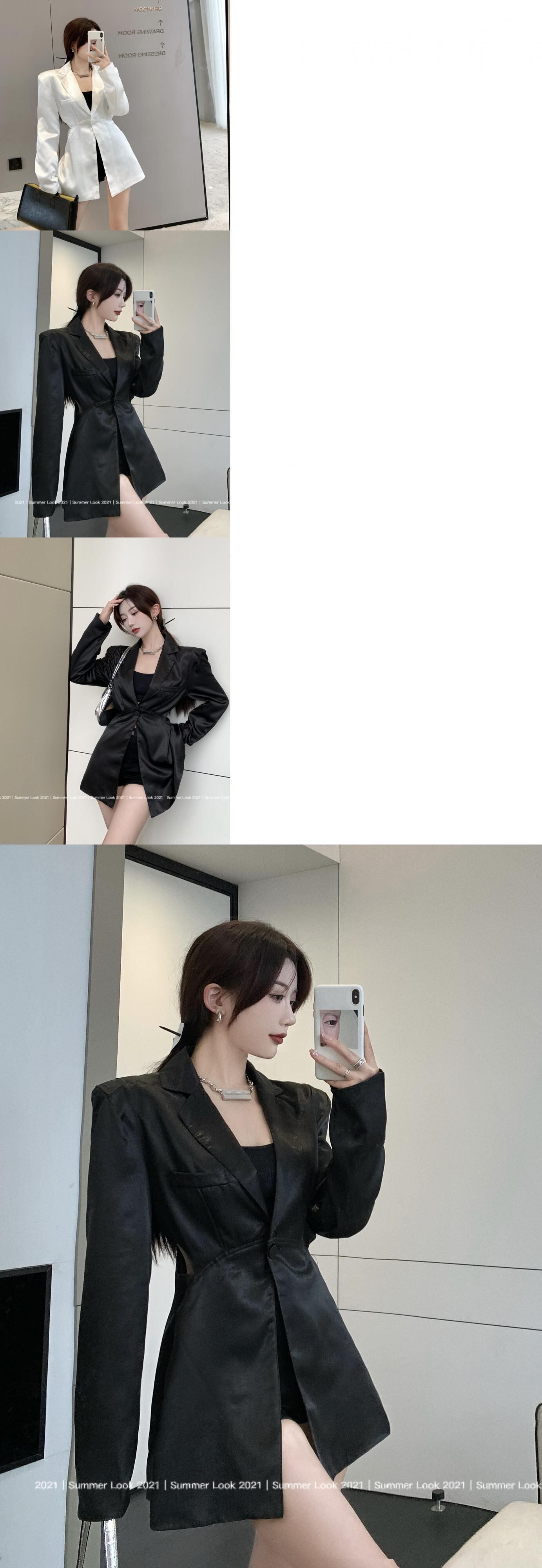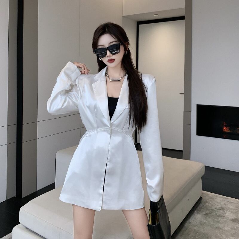 スタイル薄手サテンジャケット サマースタンダードウェスト ロング レトロ 夏物 ガールズファッション38034189868