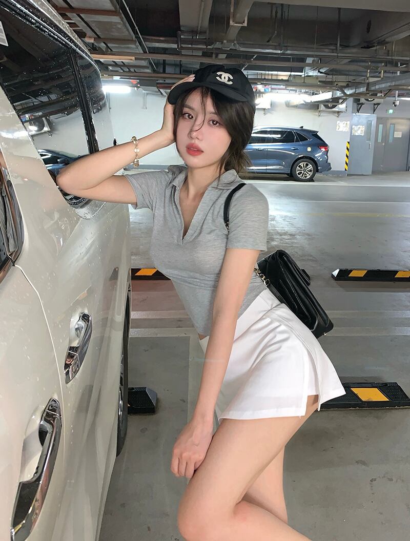 色:グレーのTシャツ,白いTシャツ,ネイビーブルーのTシャツ,白いスカート,グレースカート